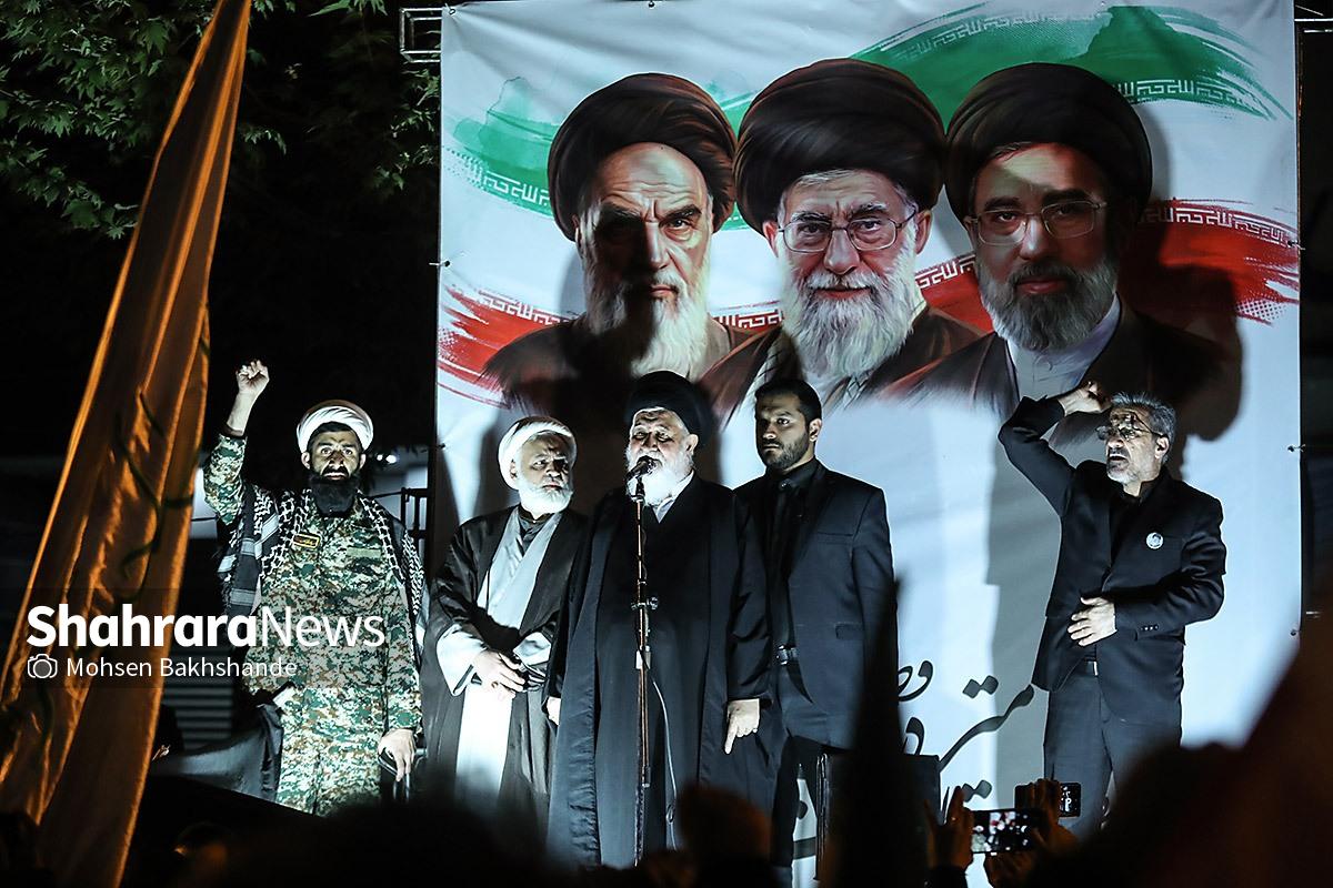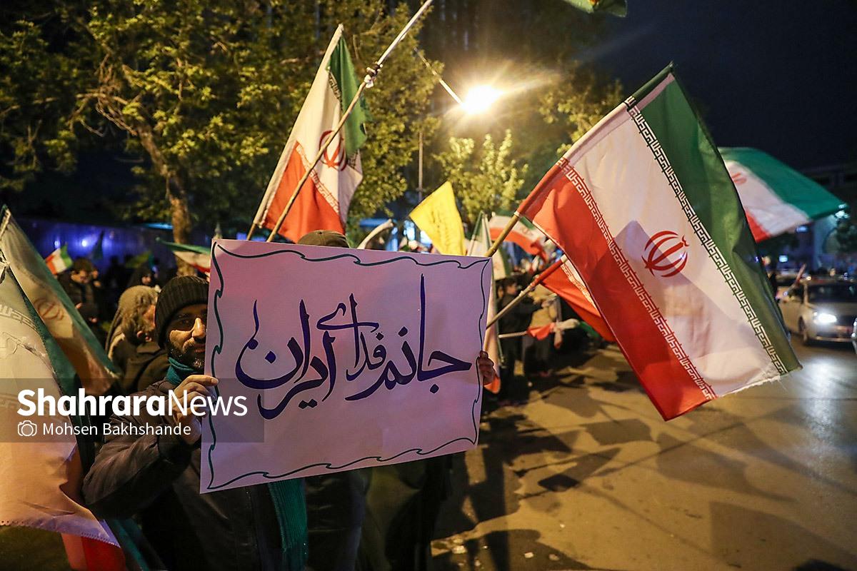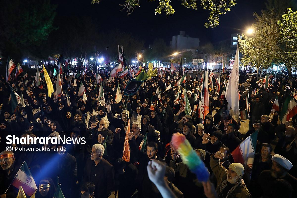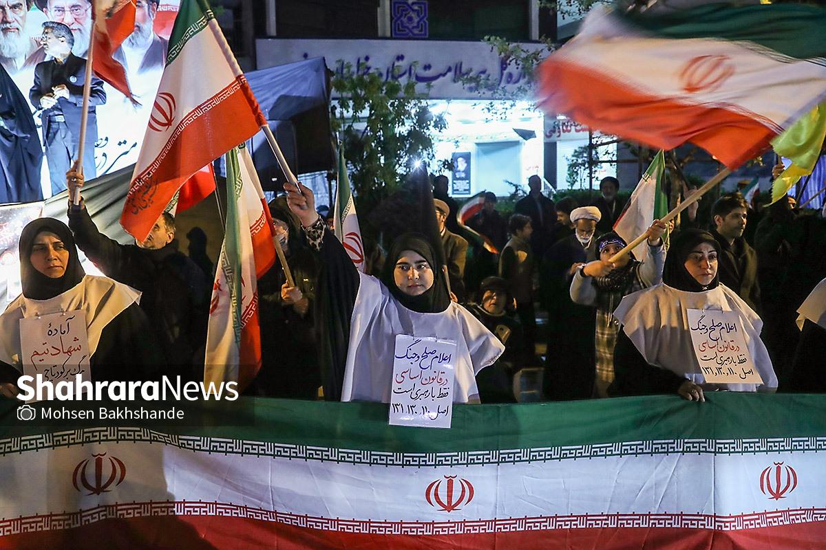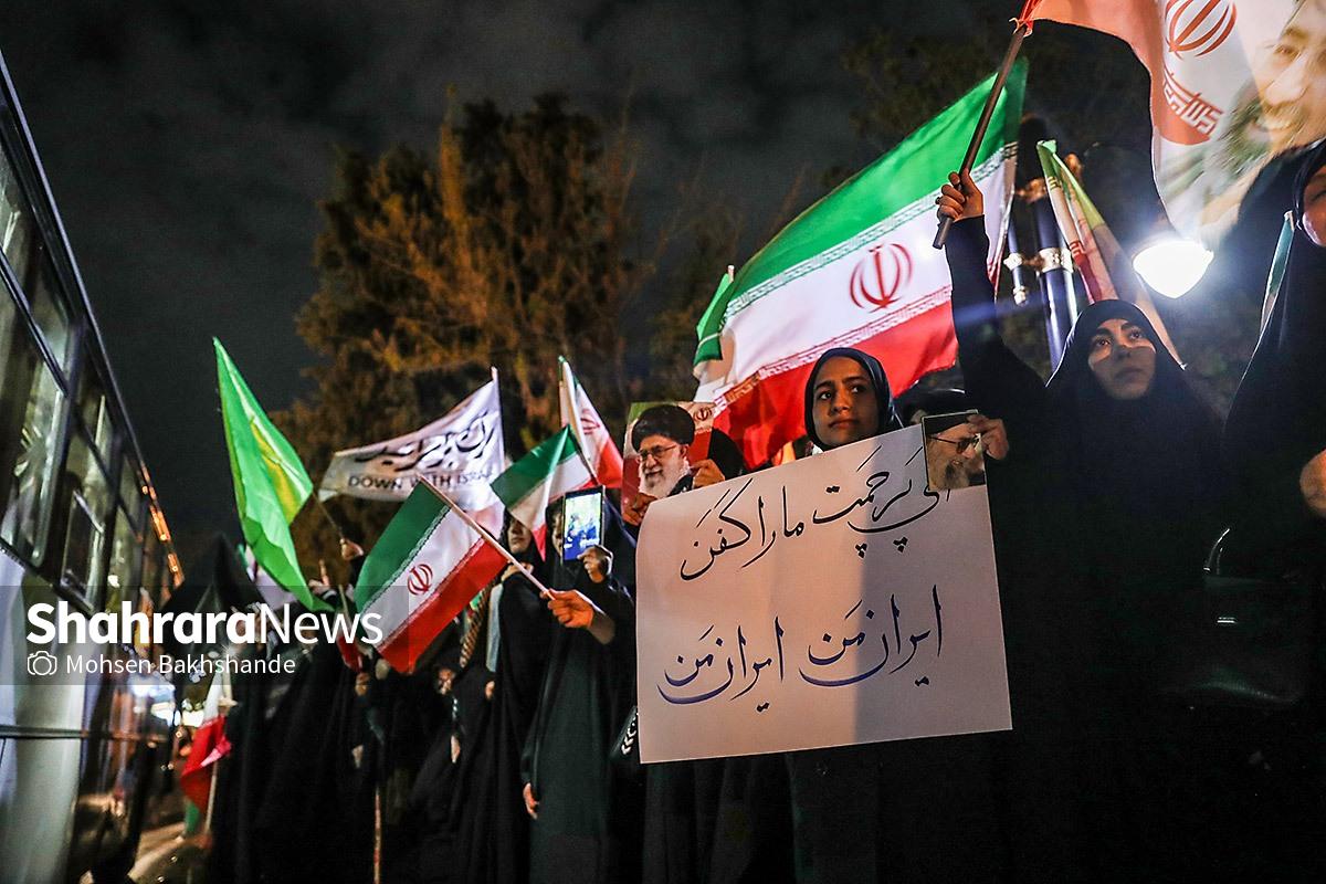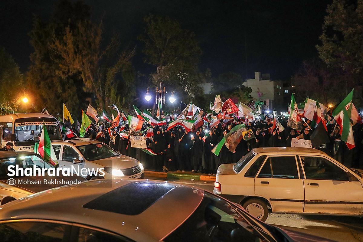 مردم مشهد با در دست داشتن پرچم مقدس ایران سیونه شب است که با اقتدار در خیابانهای شهر حضور دارند و خیابان حالا به سنگری برای مردم تبدیل شده است. تصاویر مربوط به حضور مردم در میدان امام خمینی (ره) میباشد
