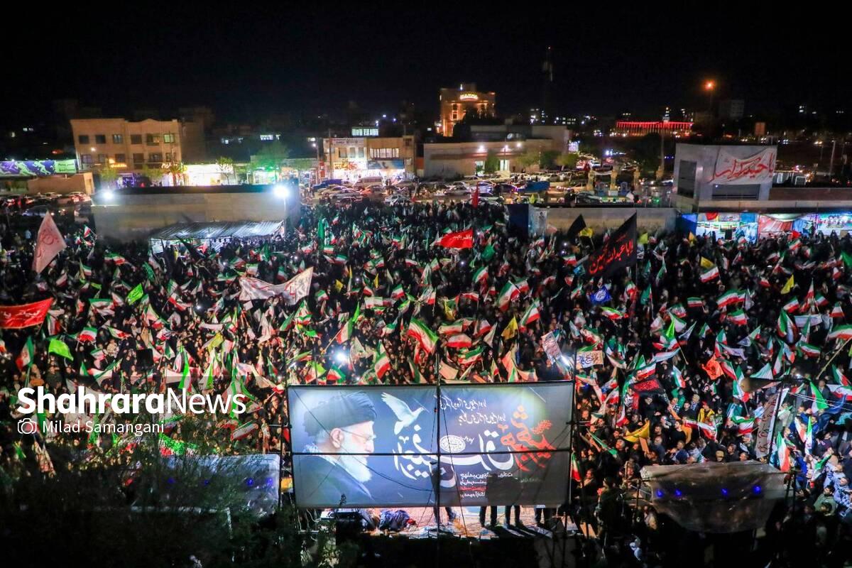 به گزارش شهرآرانیوز، شعار مردم مشهد در چهل و دومین موج حضور میدانی در خیابانهای شهر امام رضا(ع)، همچنان «مرگ بر آمریکا» و «مرگ بر اسرائیل» است. شعاری که با صدای رساتر از همیشه فریاد میزنند و با دست خالی پای دفاع از امنیت شهرشان میایستند. مشهد، ۴۲ روز است که ایستاده و این پرچم مقدس، بالاتر از همیشه همچنان در اهتزاز است.