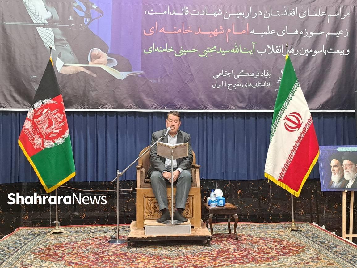 جمعی از علمای افغانستانی ساکن مشهد مقدس با برگزاری مراسمی تحت عنوان «اربعین فراق» یاد و خاطره رهبر شهید انقلاب اسلامی ایران را گرامی داشتند و با سومین رهبر انقلاب اسلامی حضرت آیت‌الله سید مجتبی حسینی خامنه‌ای بیعت کردند. آیت‌الله علم الهدی در حاشیه این مراسم اظهارداشت: برادران افغانی و ایرانی دوتا نیستند، یکی‌اند، چون دل‌هایشان متوجه ولایت اهل بیت است.