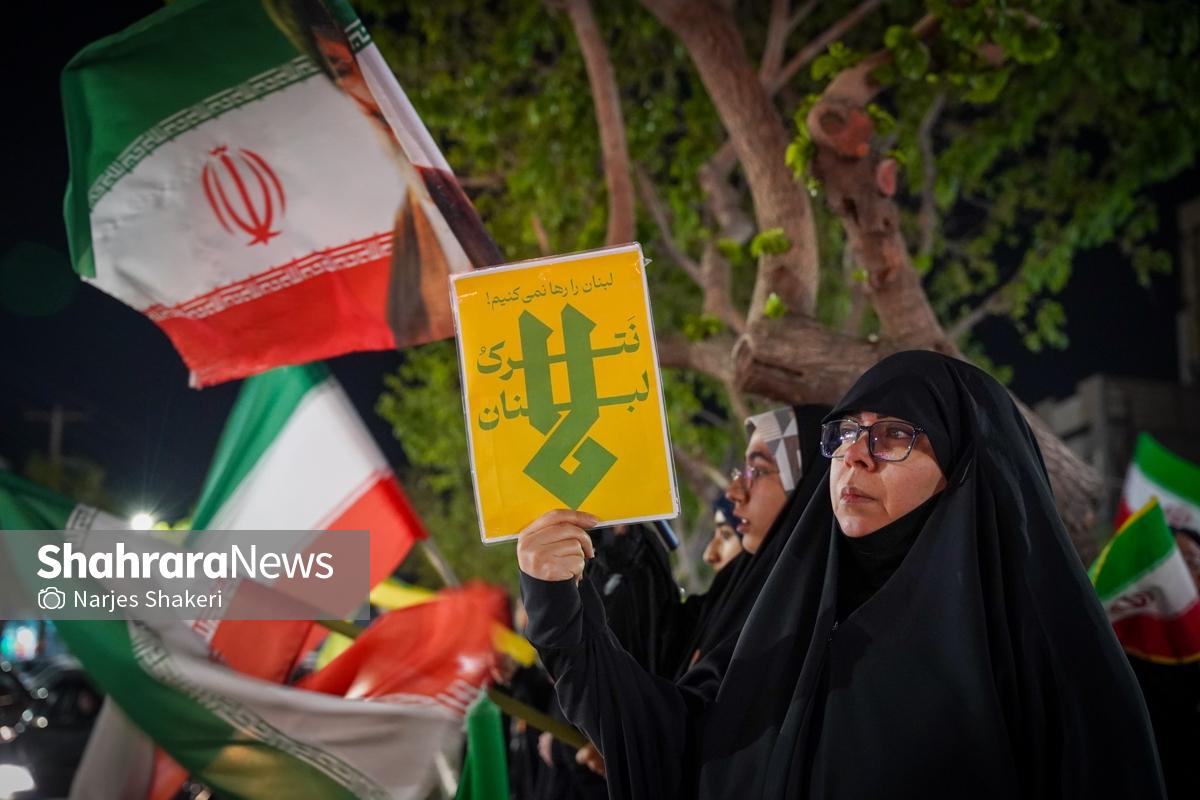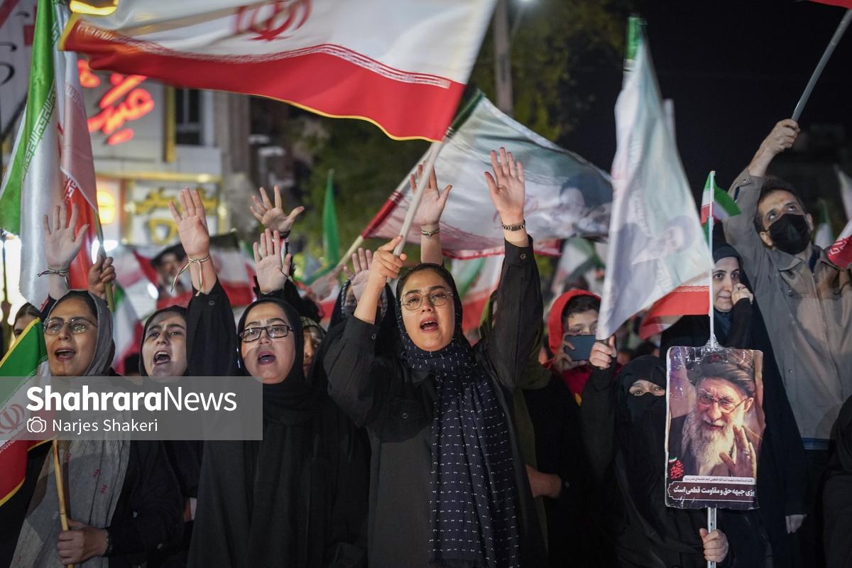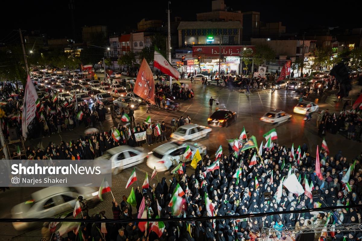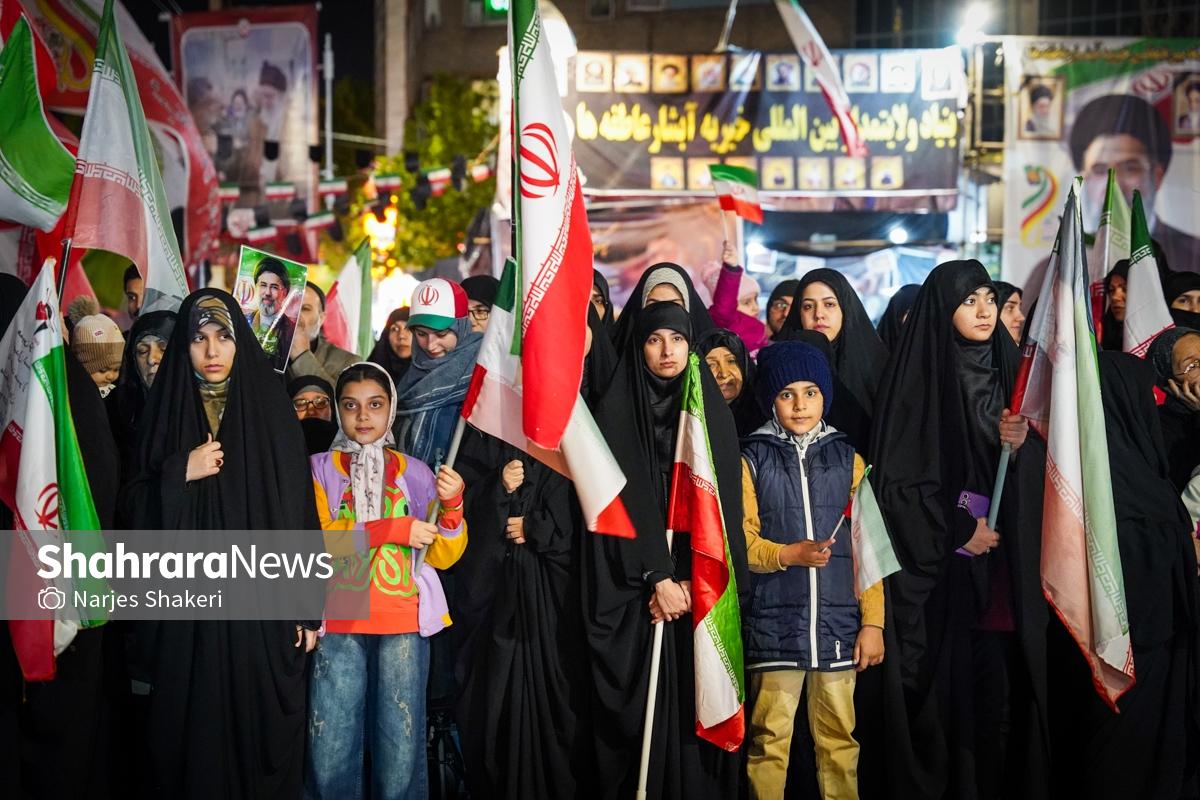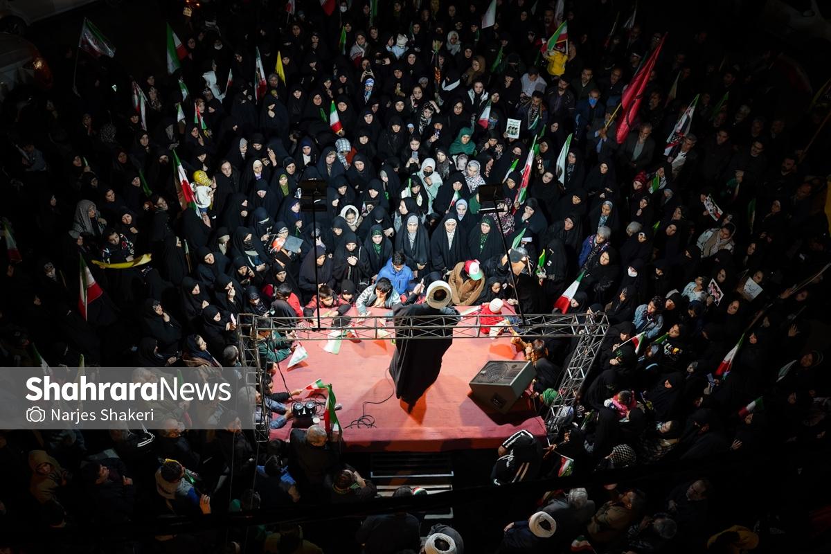 امشب نیز اقشار مختلف مردم، دستهدسته در نقاط مختلف سطح شهر به خیابان آمدند، پرچم مقدس وطن را بر دست بلند کردند و رساتر از هر زمان دیگر «مرگ بر آمریکا» و «مرگ بر اسرائیل» گفتند.