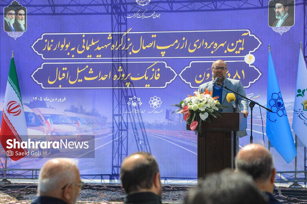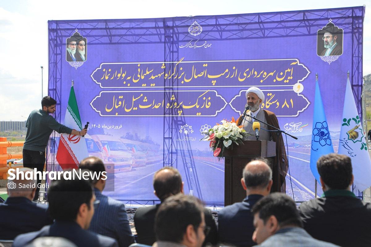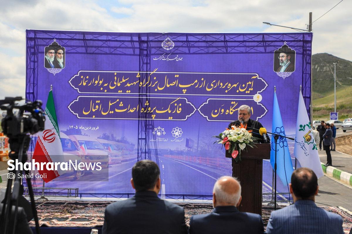 گزارش تصویری |بهرهبرداری از اتصال بزرگراه شهید سلیمانی به بلوار نماز، ۸۱ دستگاه ون و احداث مسیل اقبال