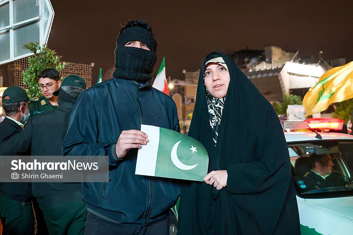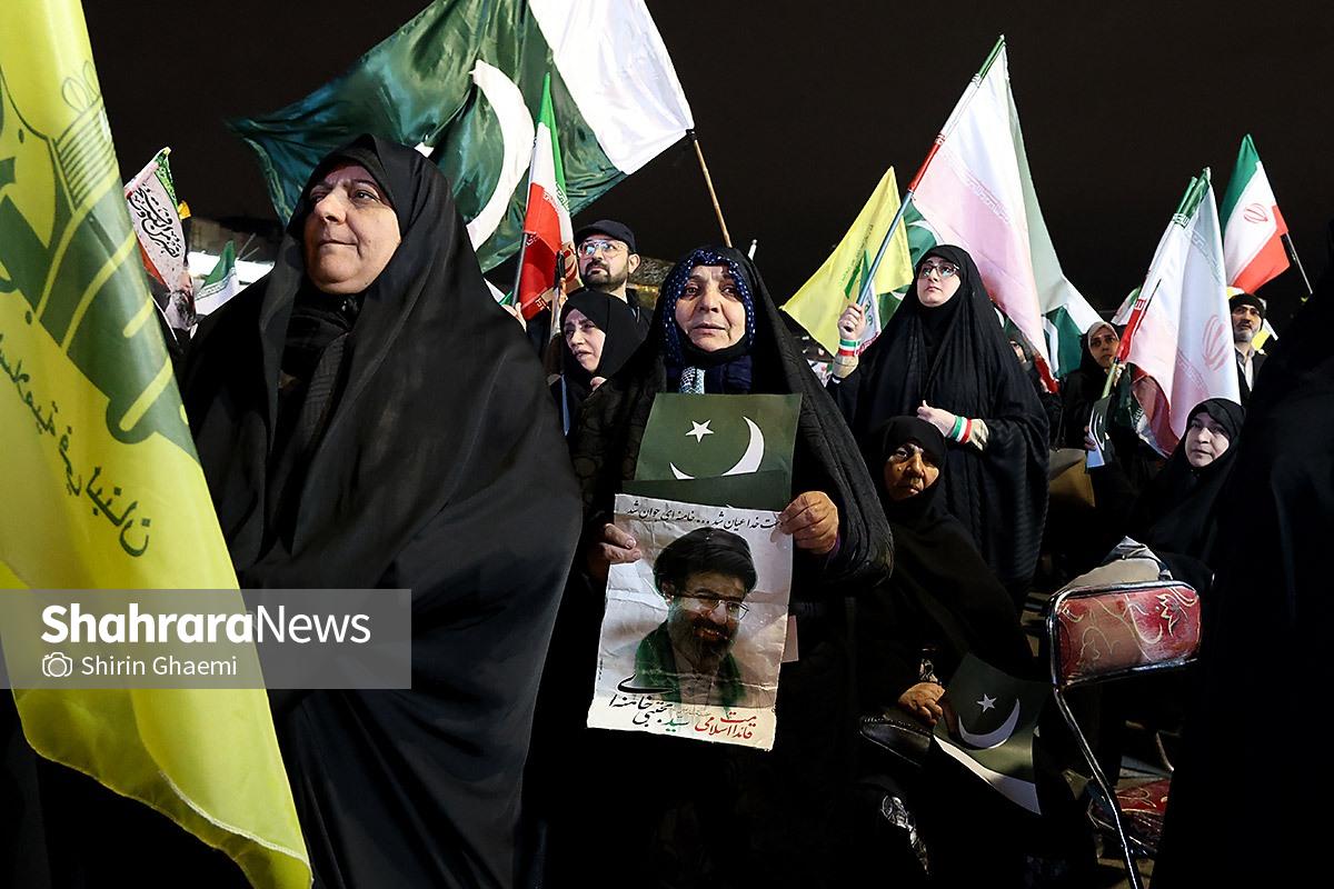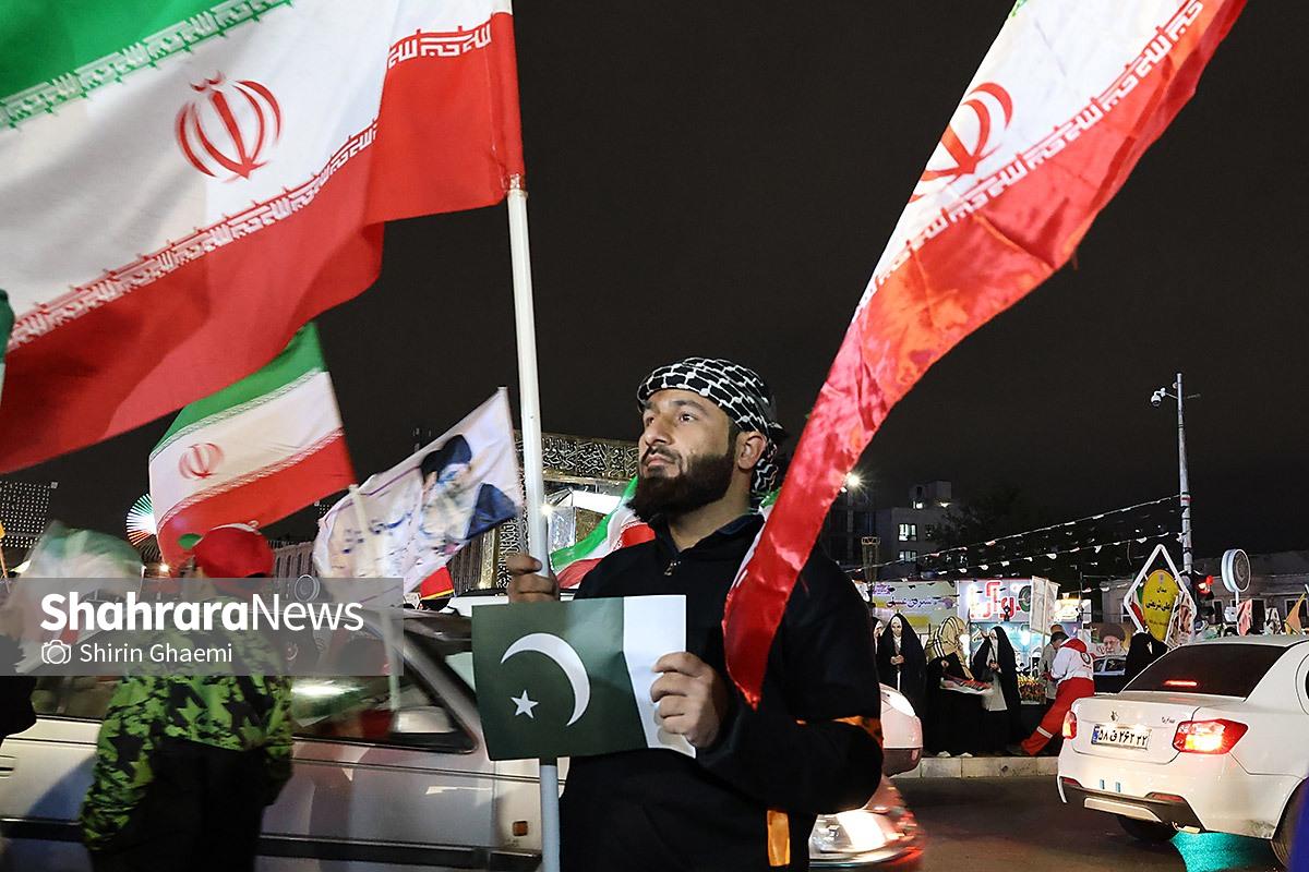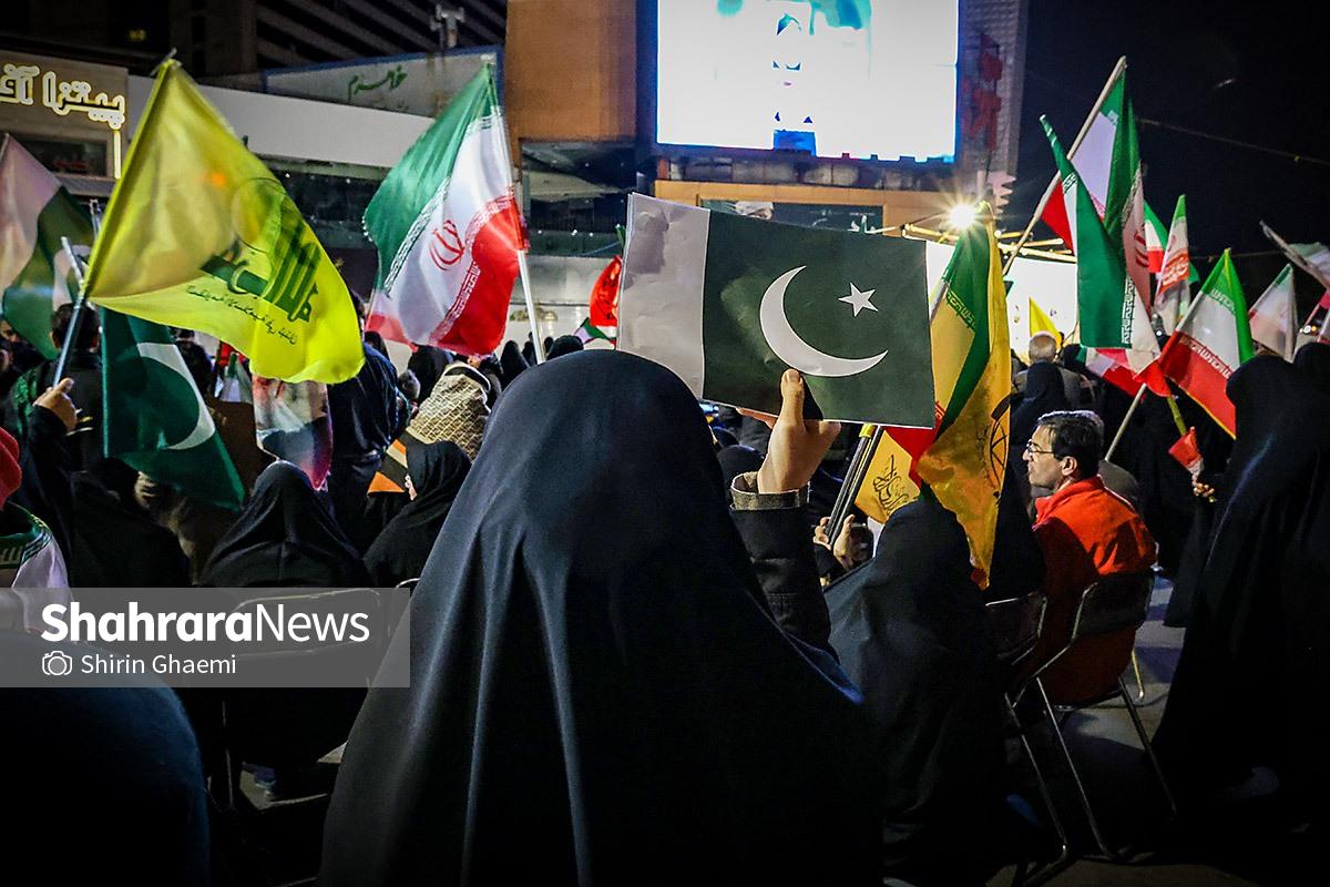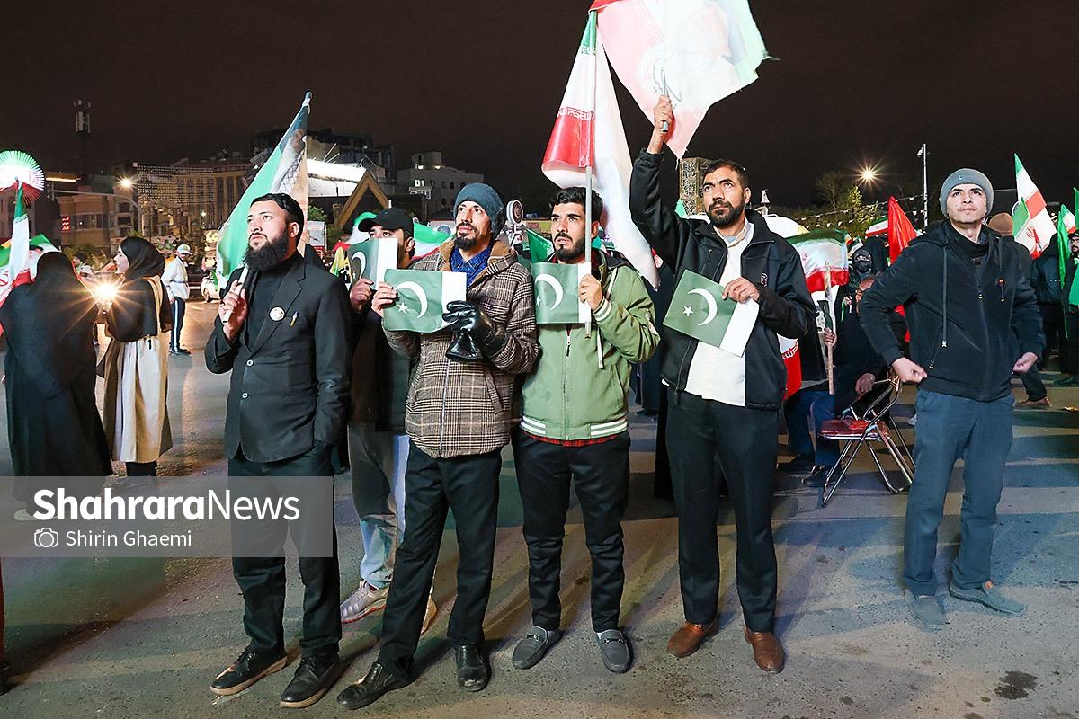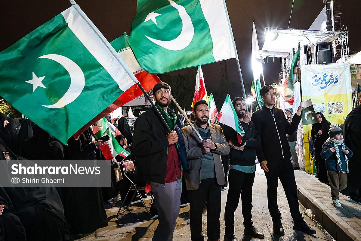 میدان شریعتی مشهد میزبان یک رویداد متفاوت بود؛ اینبار هزاران پاکستانی مقیم مشهد به صحنه آمده بودند و با همان زبان شیوا و زیبای خودشان «زنده باد ایران» و «مرده باد آمریکا» میگفتند.