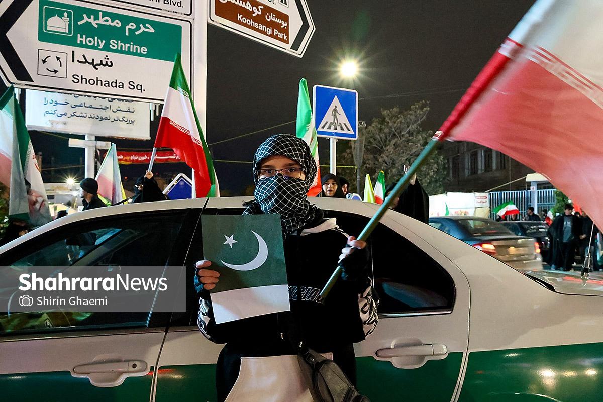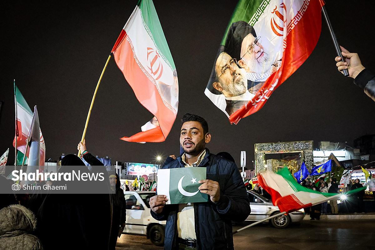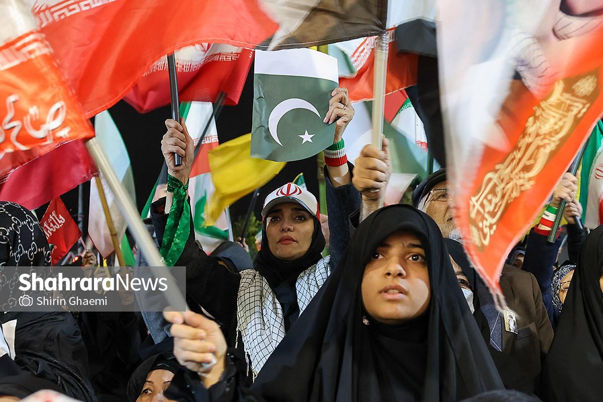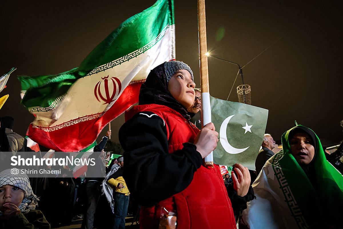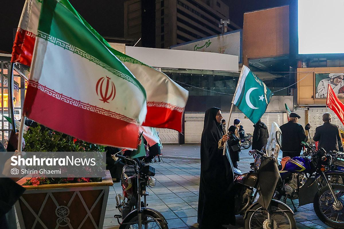 میدان شریعتی مشهد میزبان یک رویداد متفاوت بود؛ اینبار هزاران پاکستانی مقیم مشهد به صحنه آمده بودند و با همان زبان شیوا و زیبای خودشان «زنده باد ایران» و «مرده باد آمریکا» میگفتند.