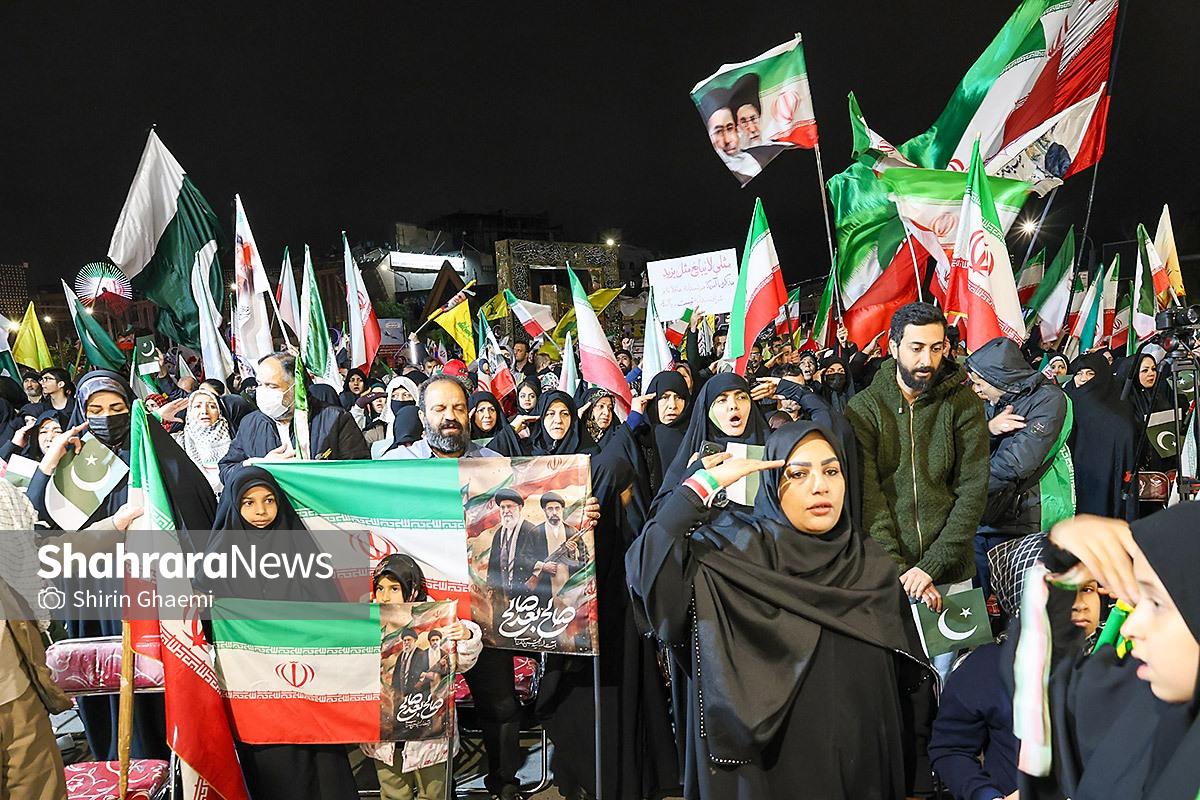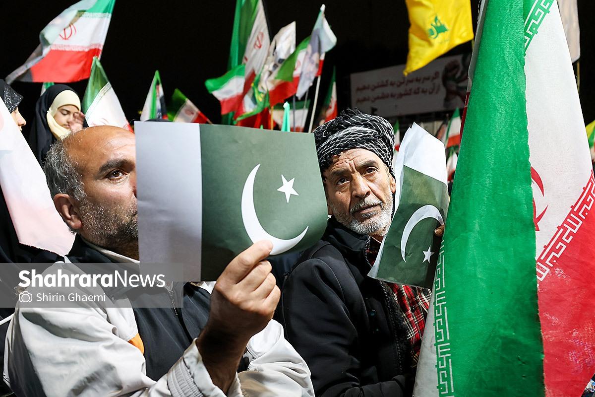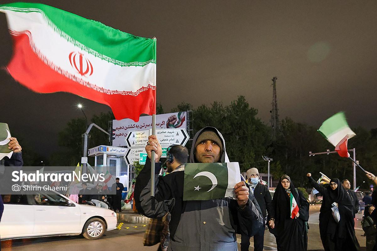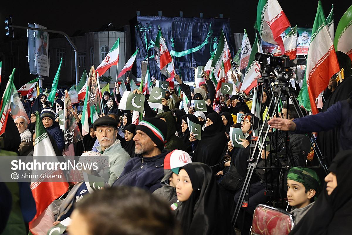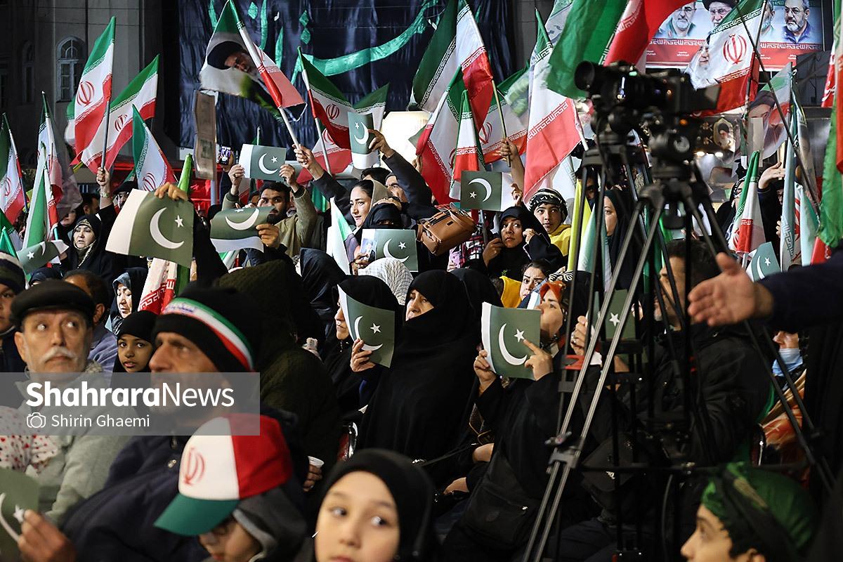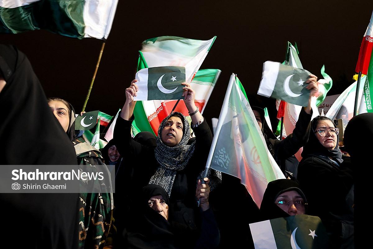 میدان شریعتی مشهد میزبان یک رویداد متفاوت بود؛ اینبار هزاران پاکستانی مقیم مشهد به صحنه آمده بودند و با همان زبان شیوا و زیبای خودشان «زنده باد ایران» و «مرده باد آمریکا» میگفتند.