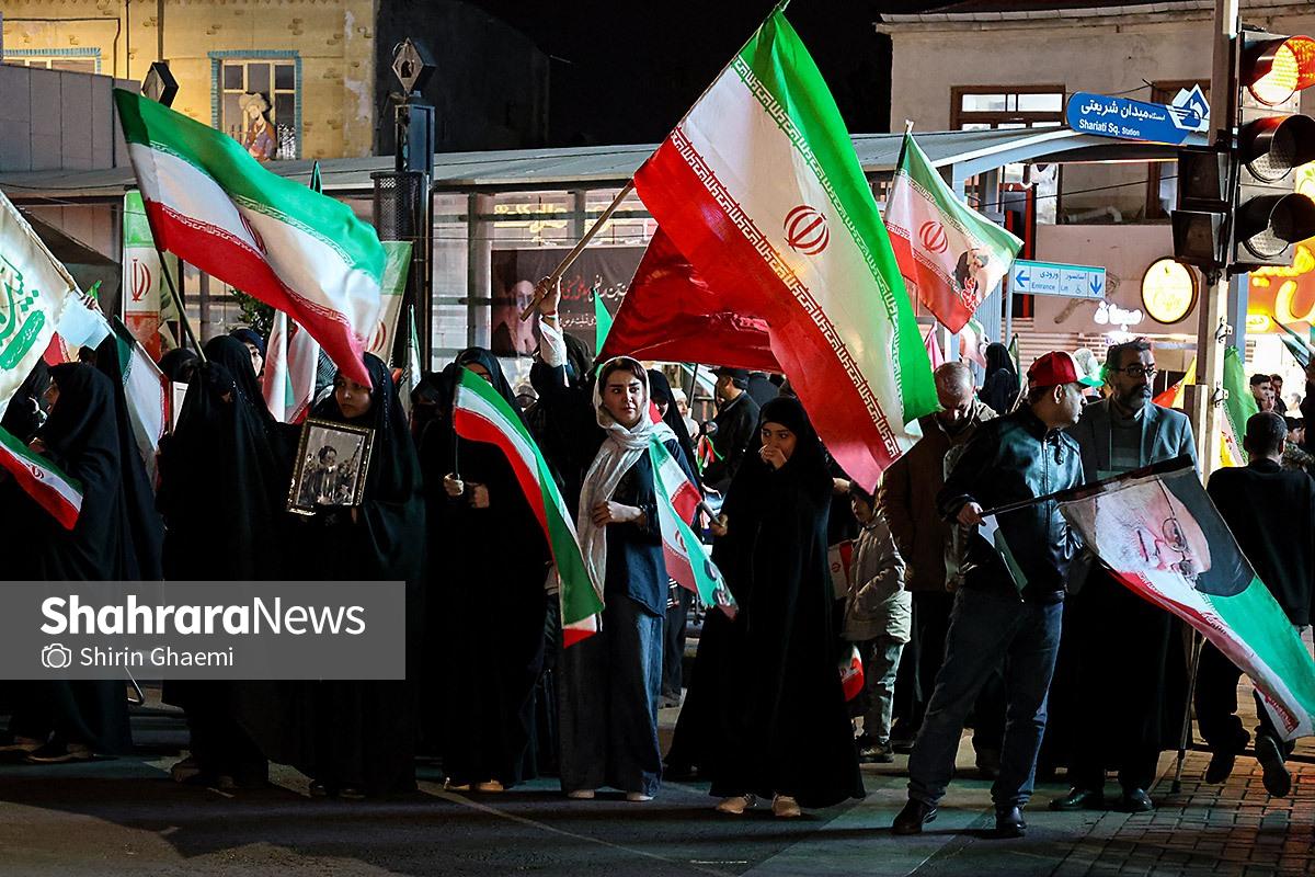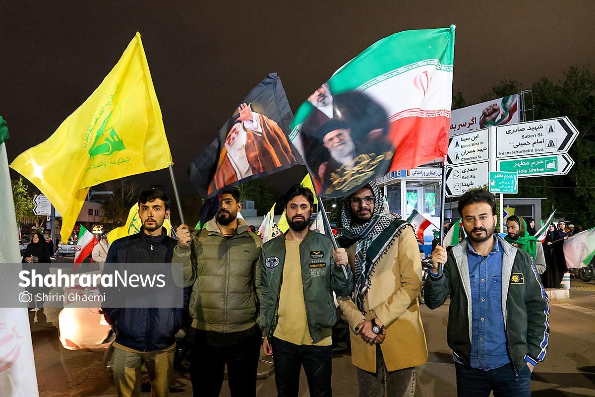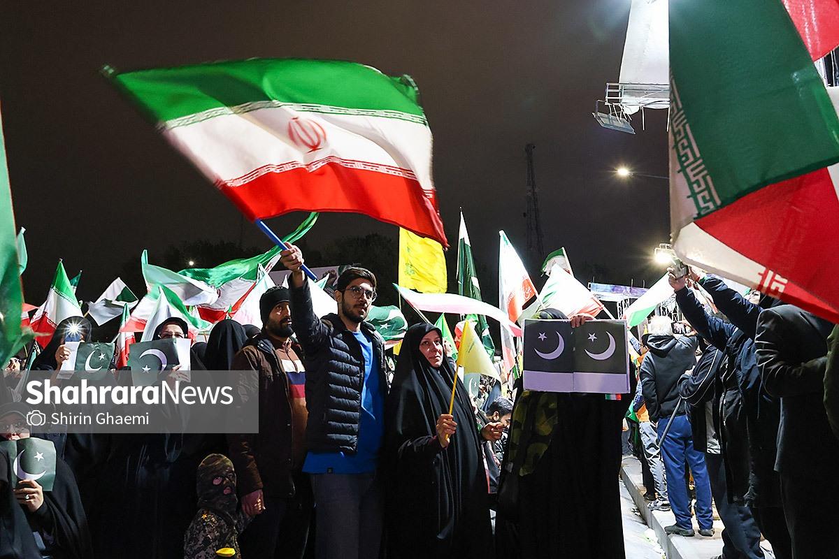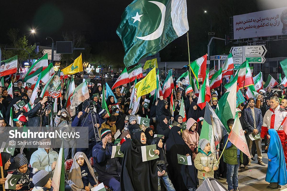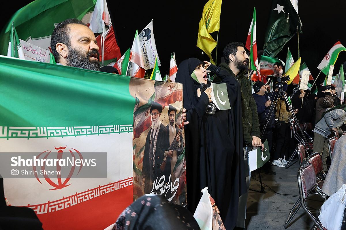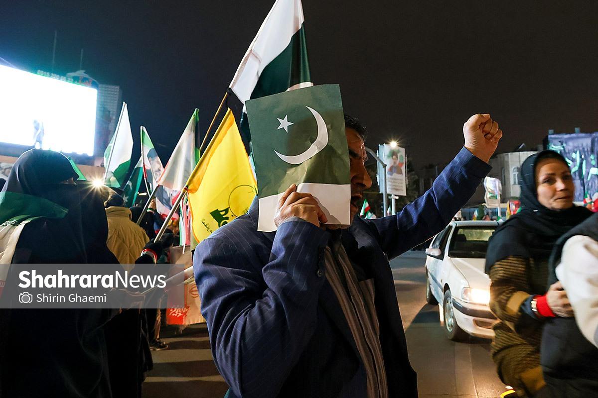 میدان شریعتی مشهد میزبان یک رویداد متفاوت بود؛ اینبار هزاران پاکستانی مقیم مشهد به صحنه آمده بودند و با همان زبان شیوا و زیبای خودشان «زنده باد ایران» و «مرده باد آمریکا» میگفتند.