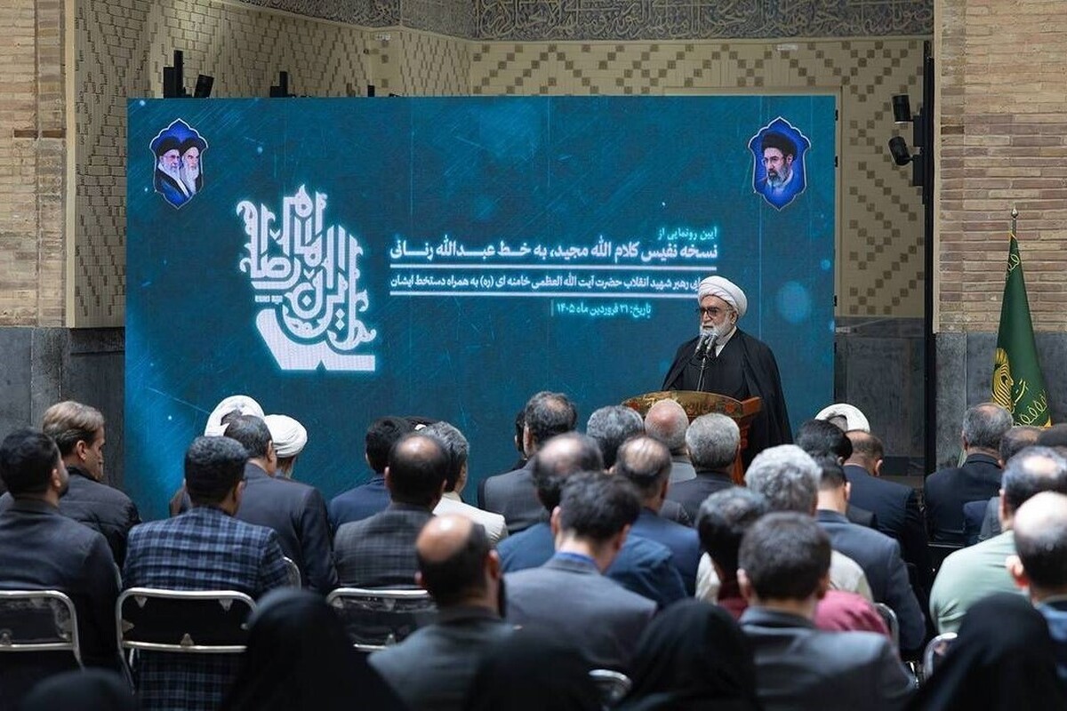 وی با اشاره به جایگاه قرآن کریم گفت: درباره این معجزه جاودانه پیامبر عظیمالشأن (ص) سخن بسیار است و مسئولیت ما در قبال آن سنگین و خطیر. امید است به برکت عنایت حضرت علیبنموسیالرضا (ع)، بتوانیم در حد توان خود در مسیر ترویج قرآن کریم و گسترش فرهنگ قرآنی گامهای مؤثر و ماندگار برداریم.گفتنی است؛ این مراسم با رونمایی از نسخه نفیس قرآن کریم به خط رنّانی و تقریظ رهبر شهید و بازدید حاضران از این اثر ارزشمند به پایان رسید.