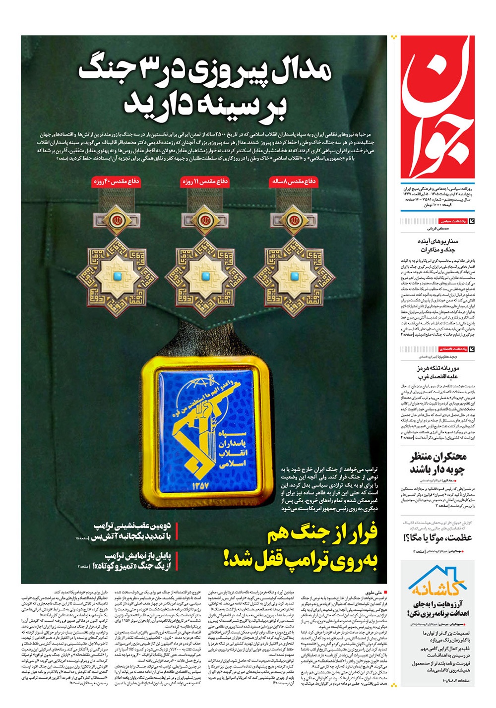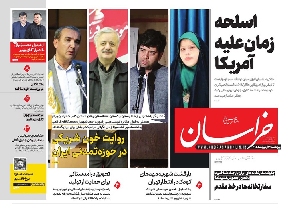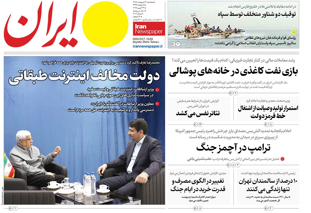 صفحه نخست روزنامه‌های کشور - پنجشنبه ۳ اردیبهشت ۱۴۰۵