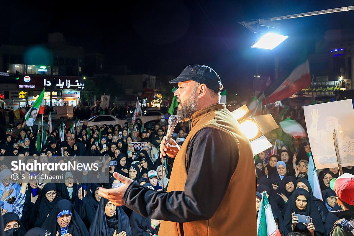 مردم مشهد نیز همراه و همگام با همه مردم ایران، در خیابانها حضور دارند و ضمن گرامیداشت یاد و خاطره رهبر شهید انقلاب اسلامی و همه شهدای انقلاب، بر ادامه راه شهدا در حفظ و حراست از حرم جمهوری اسلامی ایران، تاکید میکنند.