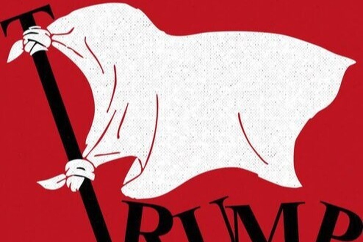 پوستر پایانِ ماجراجویی‌هایش The end of his adventures. پروندهٔ بیمار: بیمار: دونالد ترامپ. ۲۸ فوریهٔ ۲۰۲۶. تغییر رژیم: صفر درصد. نابودی اورانیوم غنی‌شده: صفر کیلوگرم. نابودی توان موشکی: صفر از صفر. هنرمند: ایمان ماندگاری. حوزه هنری انقلاب اسلامی.