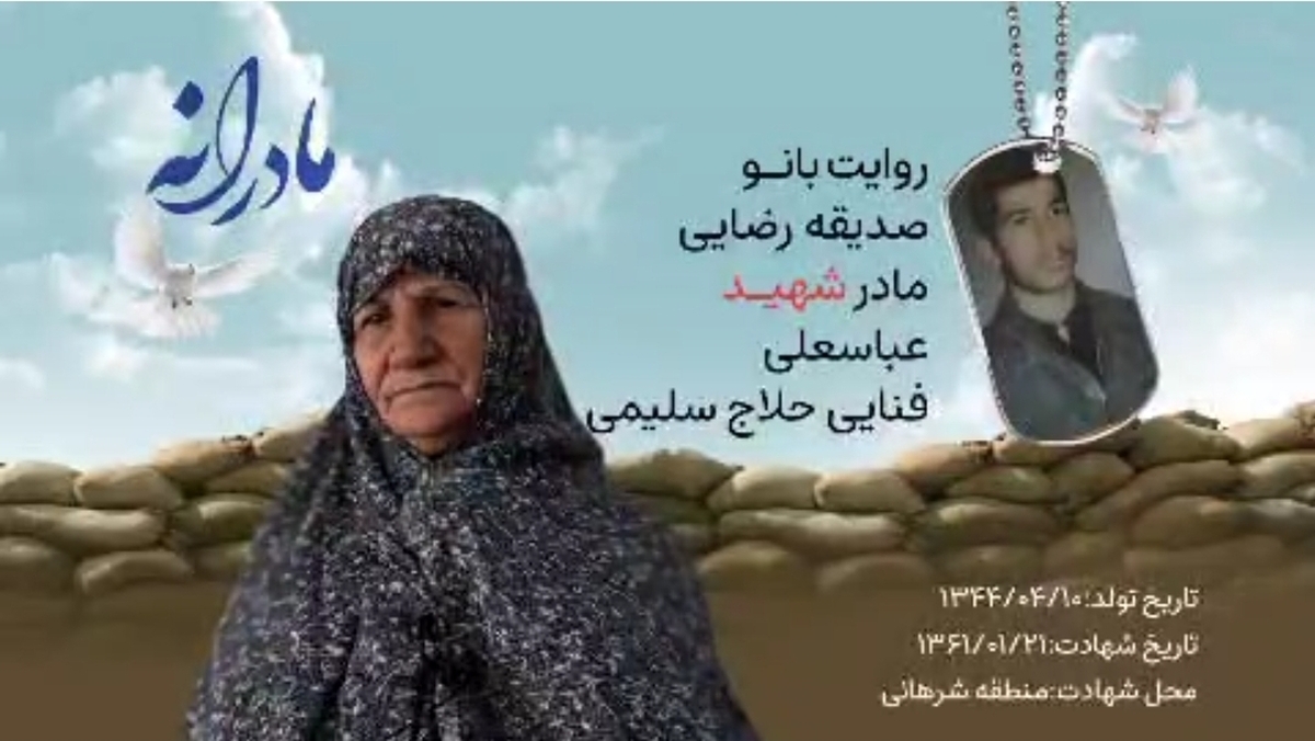 مادر، خاطرات زیادی از فرزند شهیدش دارد، او در خاطرش هست که فرزندش در هفده سالگی با تیری که به قلبش اصابت کرده بود به شهادت رسید؛ با مراجعه به خاطرات فرزند شهیدش به عکسی اشاره میکند که فرزندش در جبهه از خودش گرفته بود و از دوستانش خواسته بود پس از شهادتش، عکس را به مادرش تحویل دهند. / روحش قرین رحمت الهی
