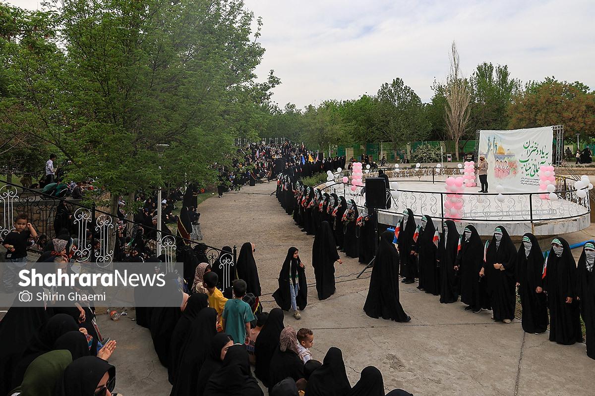 اجتماع بزرگ دختران و نور کرامت در مجموعه آبنمای بوستان پردیس محله توس در پنجم اردیبهشت ماه به مناسبت دهه کرامت با حضور دختران انقلابی مشهد برگزار شد.