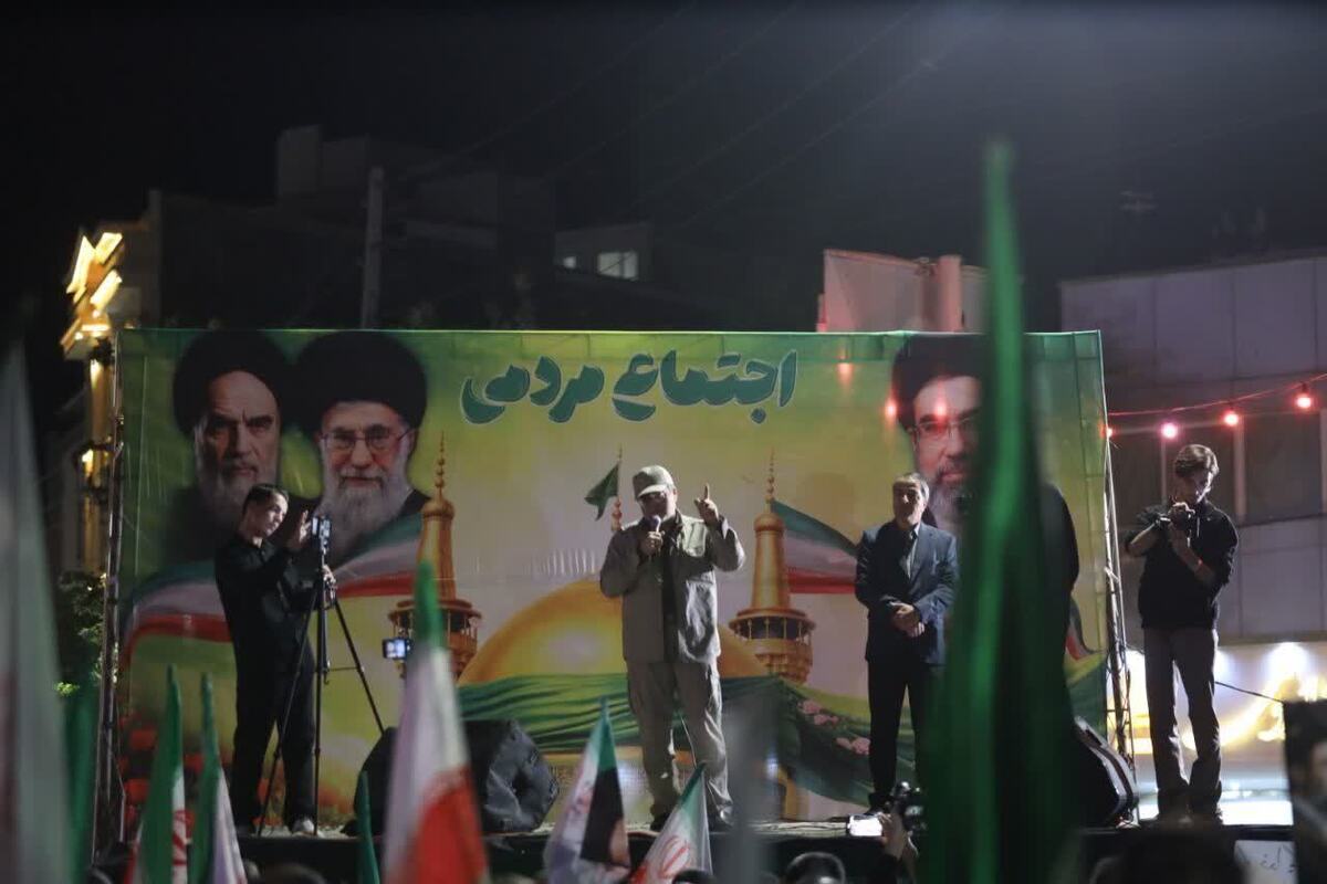 وی گفت: درمیان این میدانهای چهارگانه رزم، دیپلماسی، خدمت و البته مهمترین میدان یعنی میدان خیابان، دشمن دنبال نقشه دیگری است. دشمن یک رزم دیگری را راه انداخته، یک جنگ دیگری را راه انداخته و آنهم جنگ رسانهای، جنگ شناختی و جنگ روایتها است. باید مراقب باشیم. دشمن وحدت ما را هدف گرفته است.