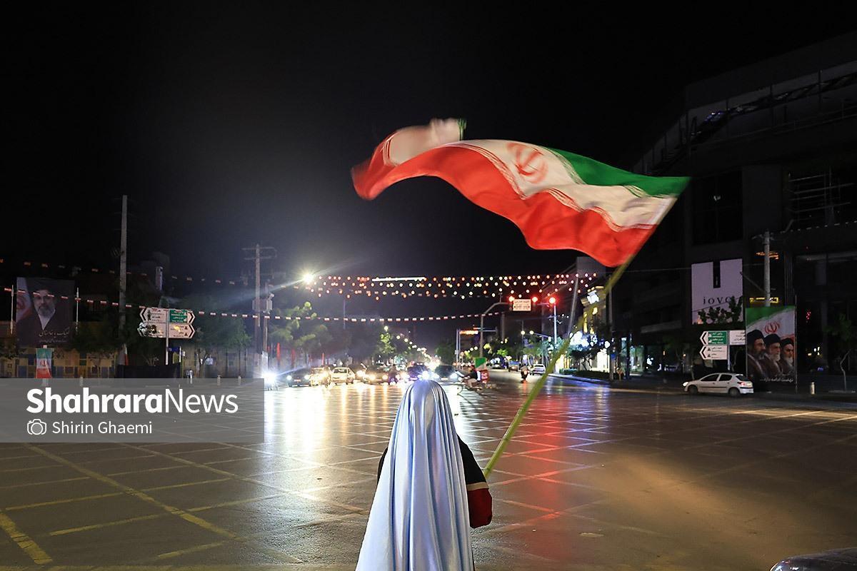 پنجاه‌وششمین شب حضور در سنگر خیابان | پرچم مقدس ایران در دستان مردم شریف مشهد (۵ اردیبهشت ۱۴۰۵)