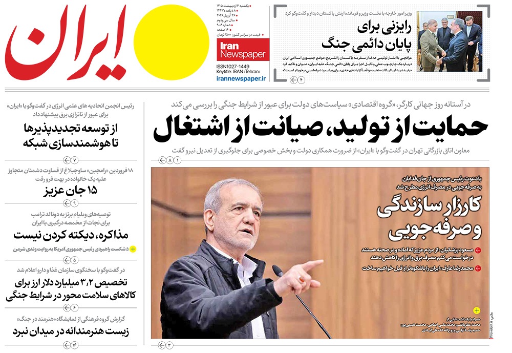 صفحه نخست روزنامه‌های کشور - یکشنبه ۶ اردیبهشت ۱۴۰۵