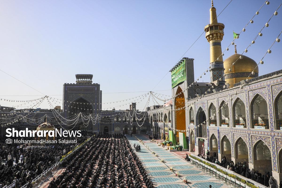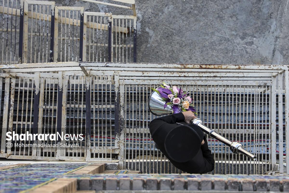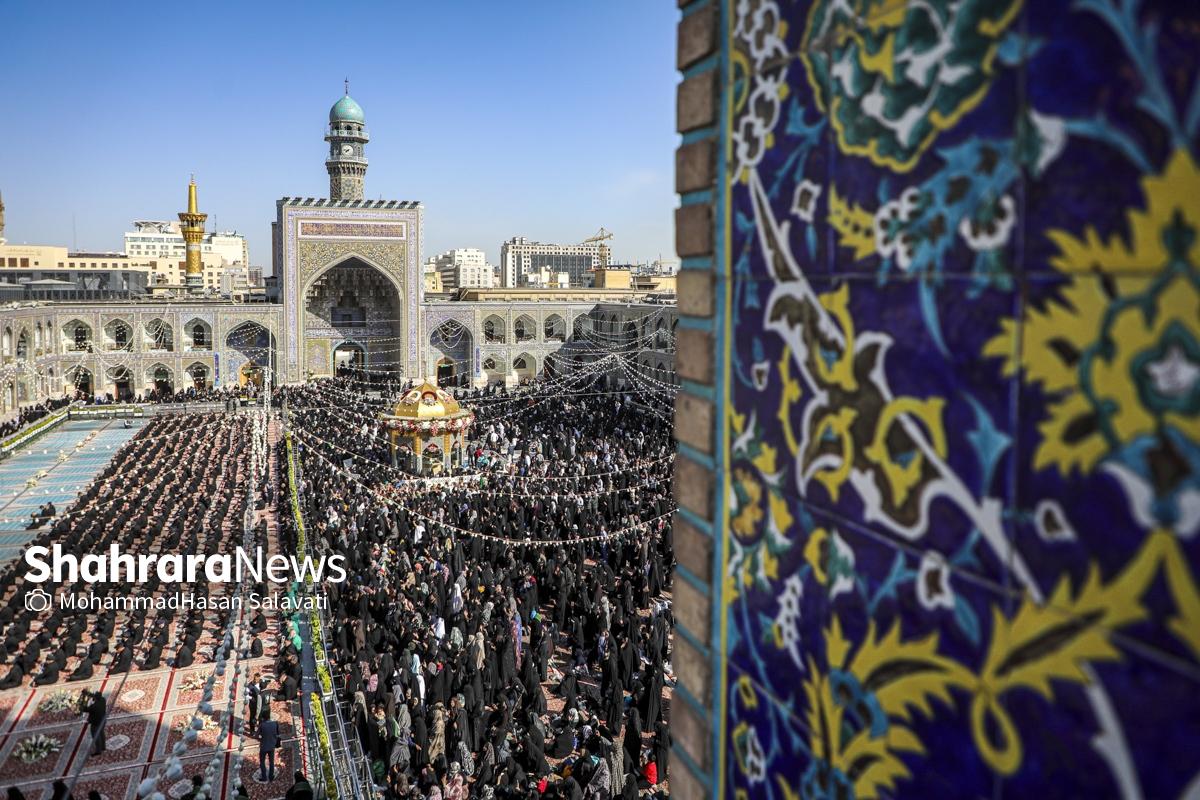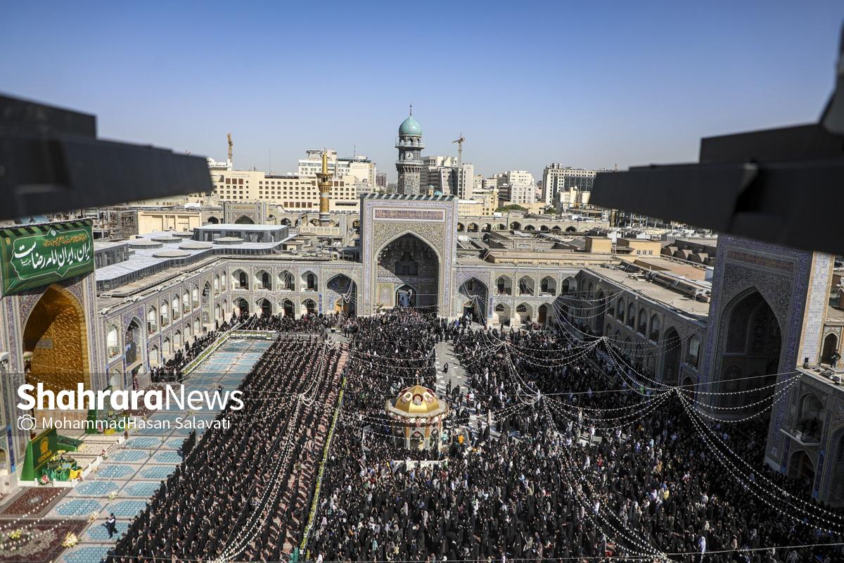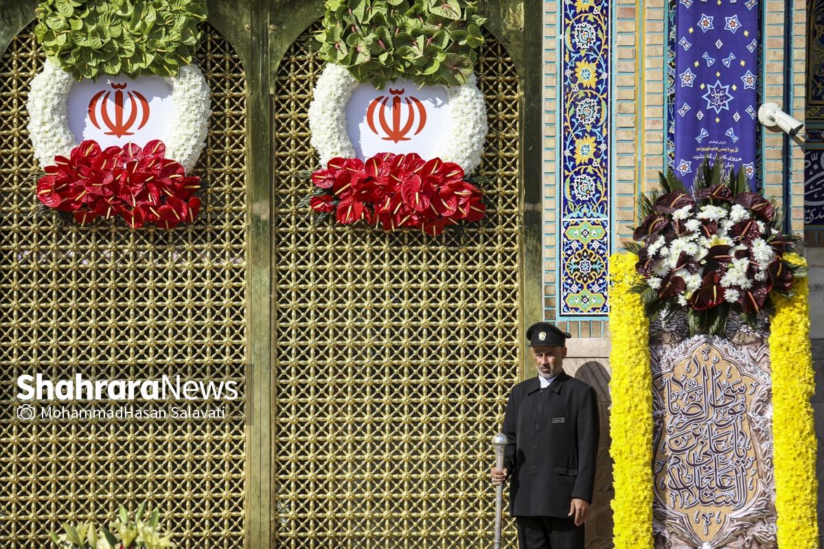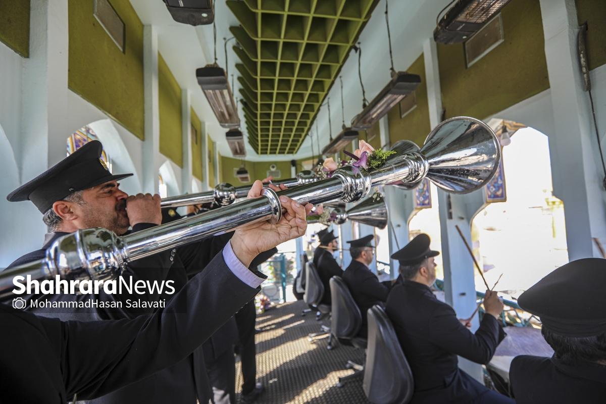 مراسم تعویض پرچم گنبد حرم مطهر ثامن الحجج (ع) صبح امروز (۹ اردیبهشت ۱۴۰۵) همزمان با سالروز ولادت آن حضرت با حضور جمع کثیری از خادمان، زائران و مجاوران بارگاه منور رضوی برگزار و نقارههای حرم مطهر نیز نواخته شد.