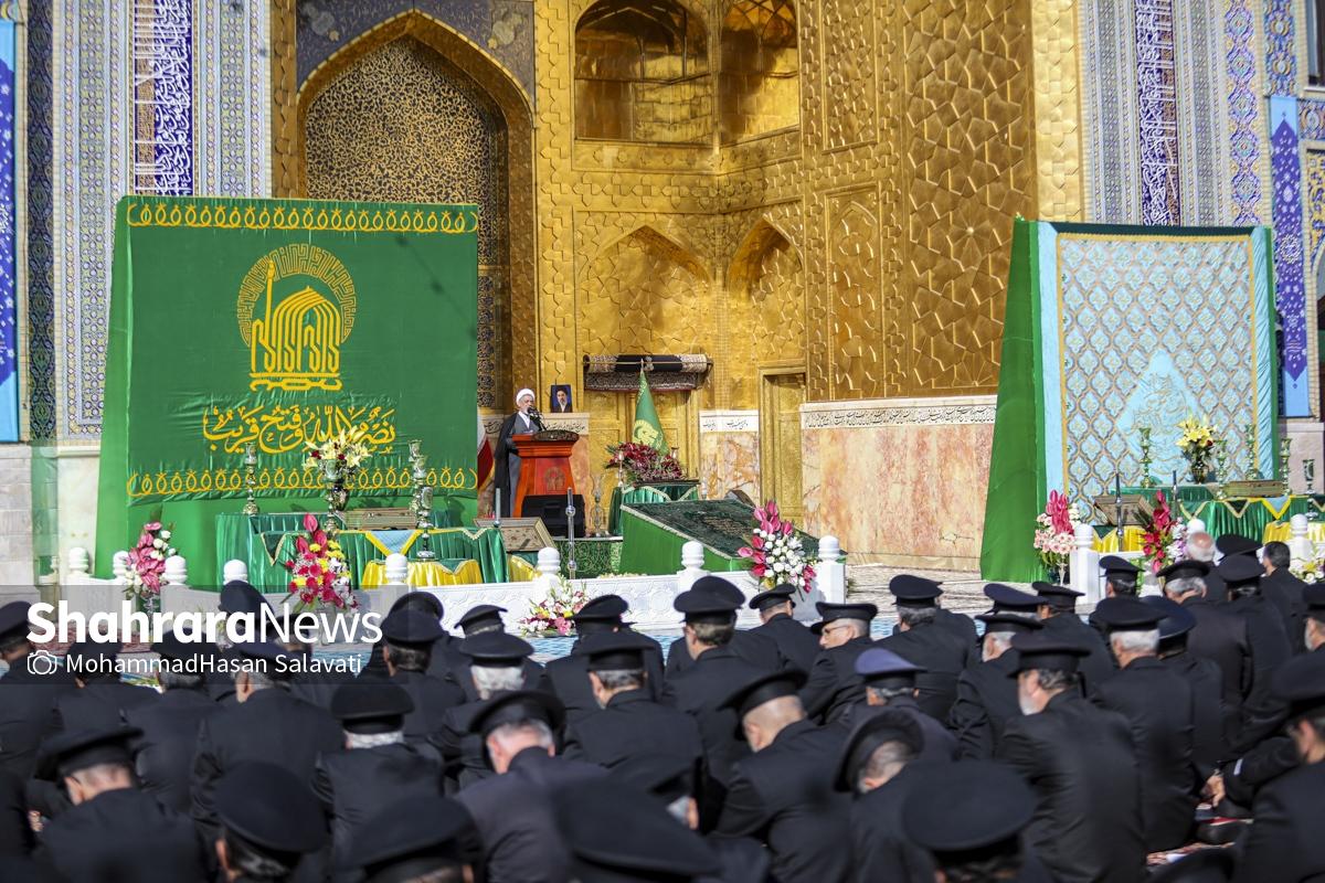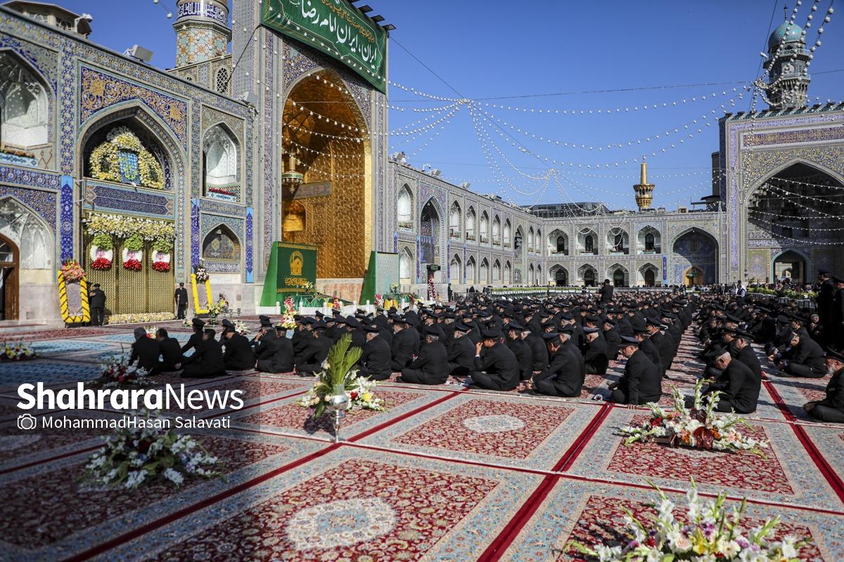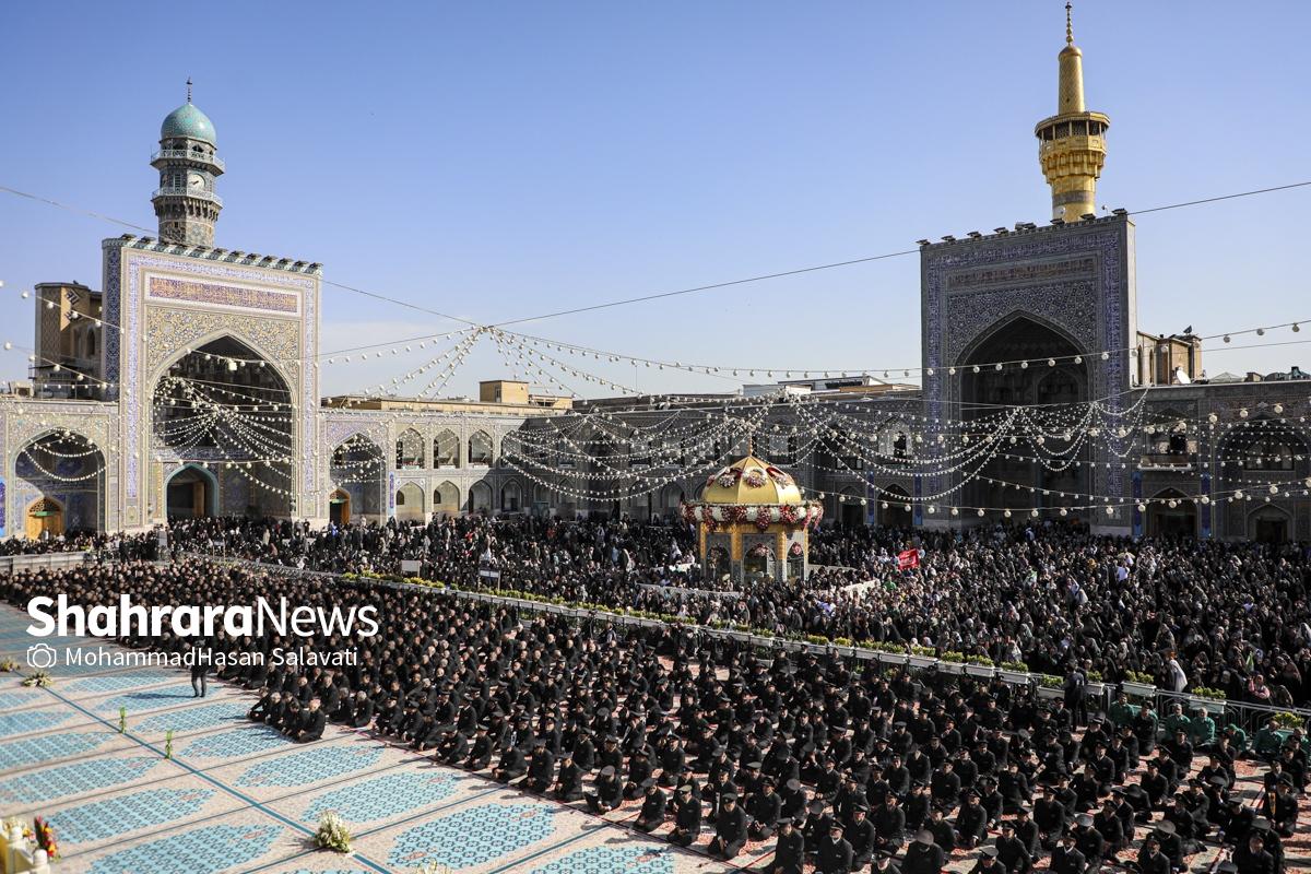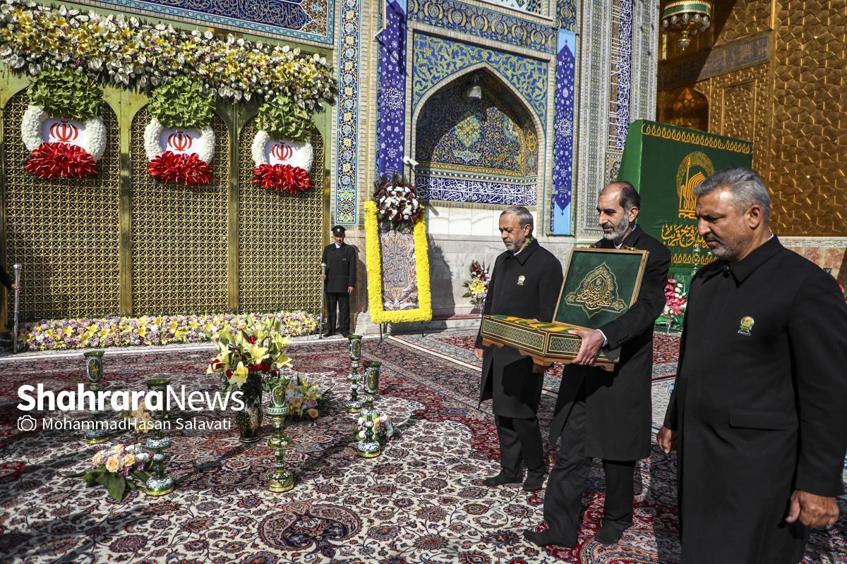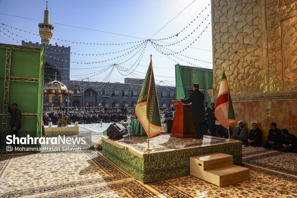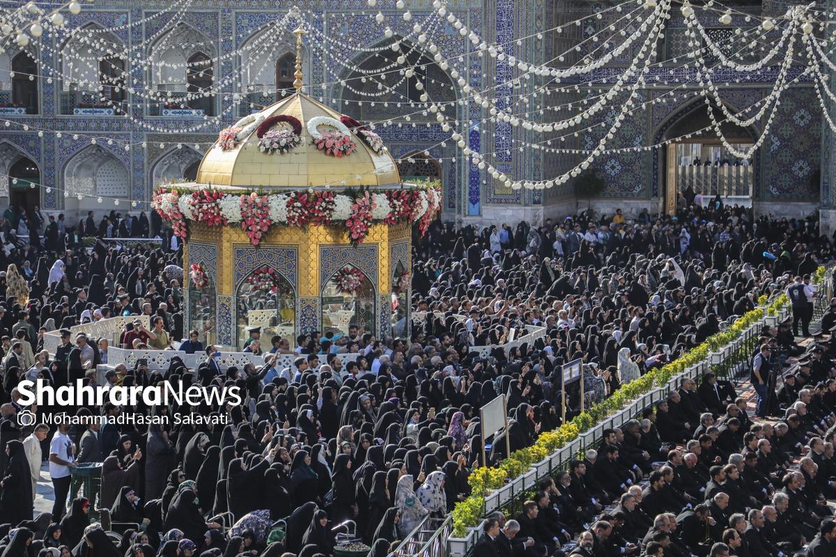مراسم تعویض پرچم گنبد حرم مطهر ثامن الحجج (ع) صبح امروز (۹ اردیبهشت ۱۴۰۵) همزمان با سالروز ولادت آن حضرت با حضور جمع کثیری از خادمان، زائران و مجاوران بارگاه منور رضوی برگزار و نقارههای حرم مطهر نیز نواخته شد.