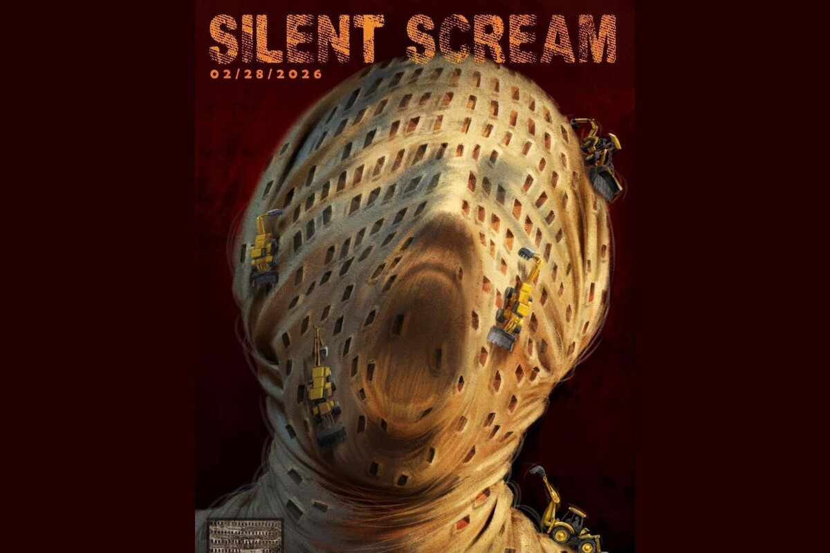 بر این اساس، در پوستر «فریاد سکوت»، یک انسان نمادین در پارچهای پیچیده شده و نمیتواند از آن وضعیت عبور کند؛ لودرها بر صورت او حرکت میکنند و در واقع چهرهاش را میکَنند و قبرها را حفر میکنند. در پایین اثر نیز، یک عکس مستند قرار داده شده که مردم آن را زیاد دیدهاند و در کنار آن دو جمله خطاب به سازمانهای حقوق بشری با مضمون تلنگر به انفعال در این مورد نوشته شده است.