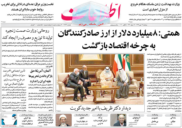 صفحه نخست روزنامه‌های کشور - دوشنبه ۱۴ مهر ۱۳۹۹
