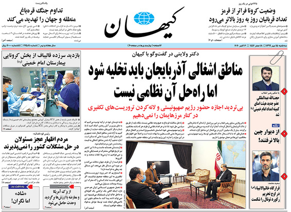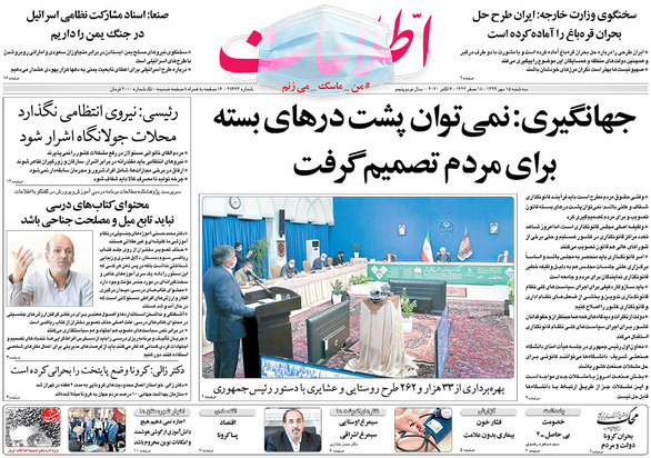 صفحه نخست روزنامه‌های کشور - سه‌شنبه ۱۵ مهر ۱۳۹۹