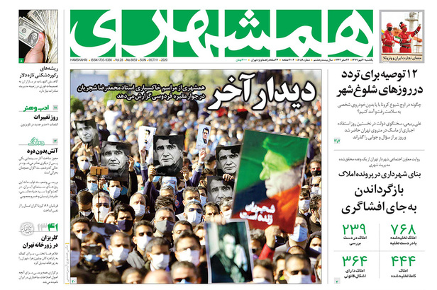 صفحه نخست روزنامه‌های کشور - یکشنبه ۲۰ مهر ۱۳۹۹