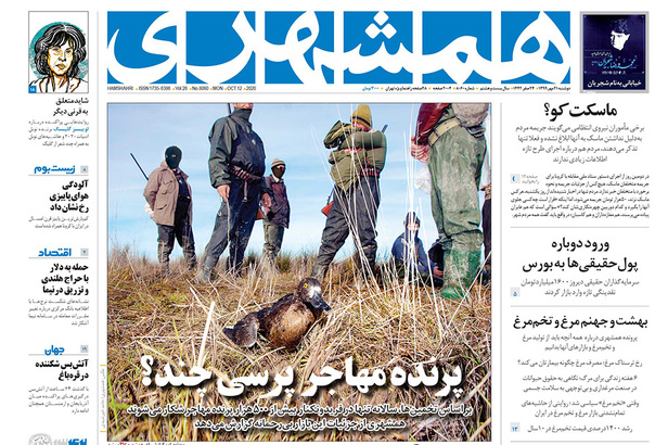 صفحه نخست روزنامه‌های کشور - دوشنبه ۲۱ مهر ۱۳۹۹