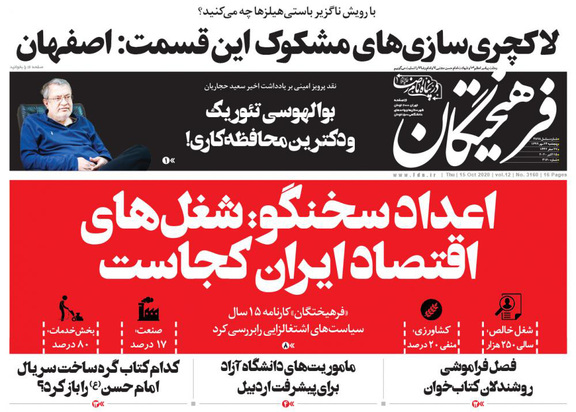 صفحه نخست روزنامه‌های کشور - پنجشنبه ۲۴ مهر ۱۳۹۹