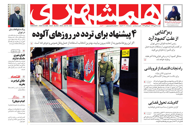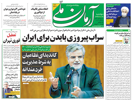 صفحه نخست روزنامه‌های کشور - دوشنبه ۲۸ مهر ۱۳۹۹