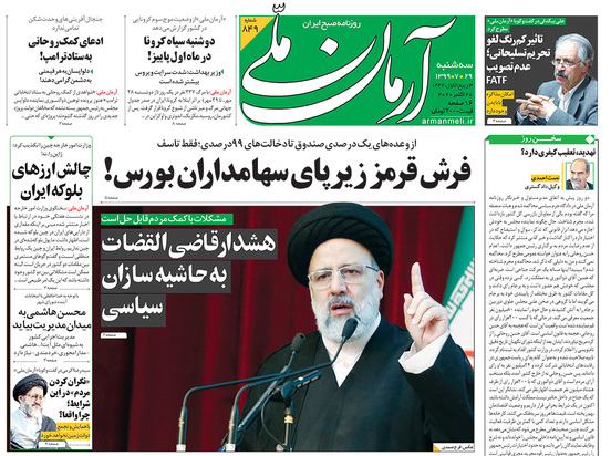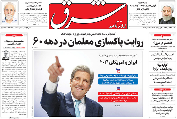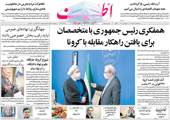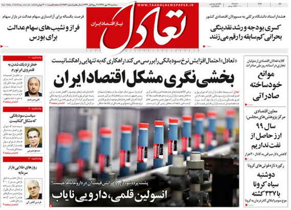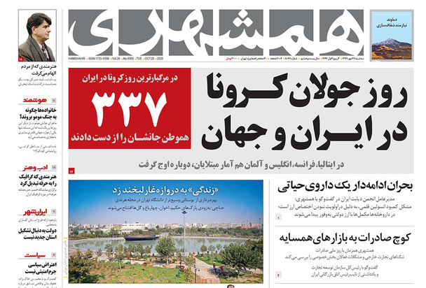 صفحه نخست روزنامه‌های کشور - سه‌شنبه ۲۹ مهر ۱۳۹۹