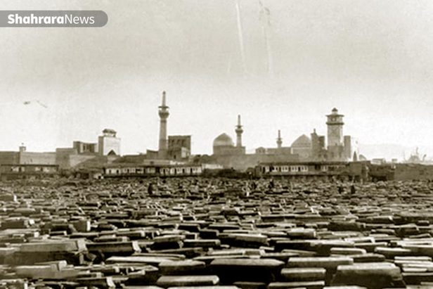 اعتمادالسلطنه، وزیر ناصرالدین‌شاه قاجار، در حدود سال‌۱۳۰۰‌ق می‌نویسد: «در وسط قبرستان، خانه‌ای است معروف به تکیه بکتاشی‌ها و می‌گویند که آنجا همان خانه حمیدبن‌قحطبه بوده است که حضرت‌رضا (ع) هم در آنجا منزل داشته‌اند. در آن حجره‌ای نیز هست که داخل آن سنگ سفیدی بر دیوار آن حجره نصب است که جای پایی در آن ترسیم شده است. این هر دو سنگ، زیارتگاه است.» ناگفته نماند که خود قبرستان هم بسیار وسیع و محل دفن بزرگانی، چون شیخ‌طبرسی بوده است.