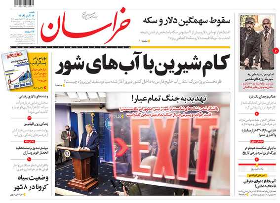 صفحه نخست روزنامه‌های کشور - شنبه ۱۷ آبان ۱۳۹۹