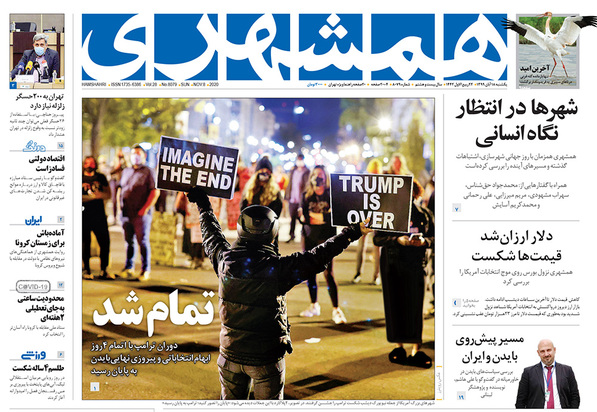 صفحه نخست روزنامه‌های کشور - یکشنبه ۱۸ آبان ۱۳۹۹