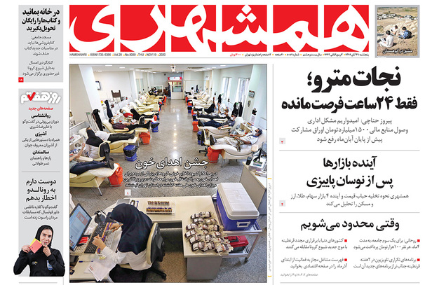 صفحه نخست روزنامه‌های کشور - پنجشنبه ۲۹ آبان ۱۳۹۹