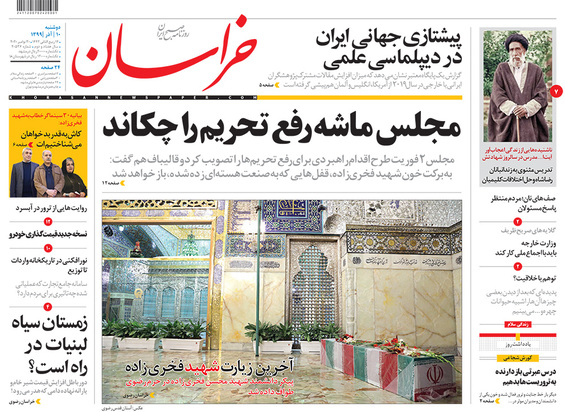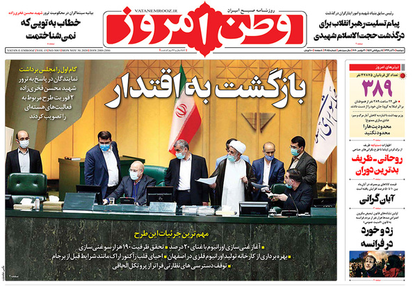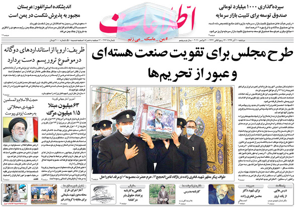صفحه نخست روزنامه‌های کشور - دوشنبه ۱۰ آذر ۱۳۹۹
