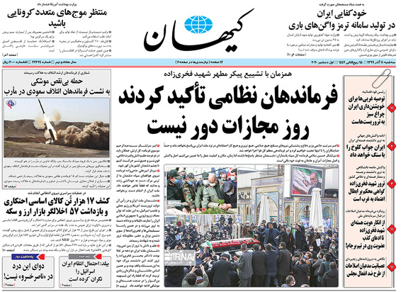 صفحه نخست روزنامه‌های کشور - سه‌شنبه ۱۱ آذر ۱۳۹۹