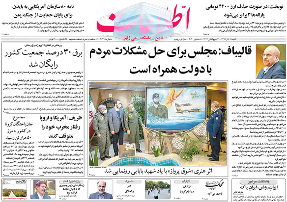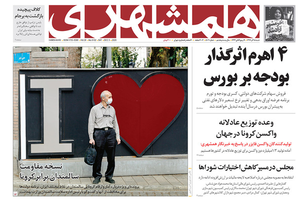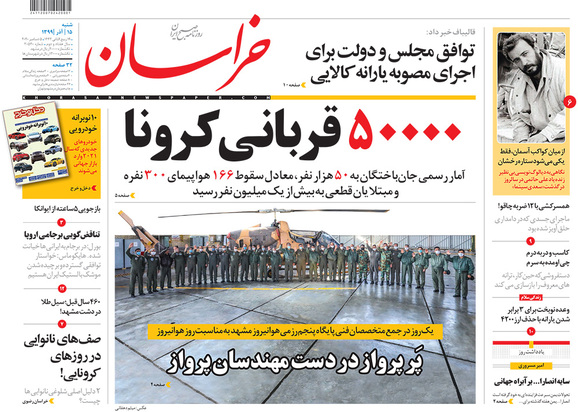 صفحه نخست روزنامه‌های کشور - شنبه ۱۵ آذر ۱۳۹۹