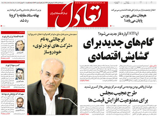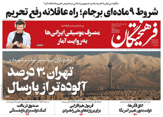 صفحه نخست روزنامههای کشور - شنبه ۲۹ آذر ۱۳۹۹