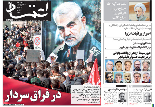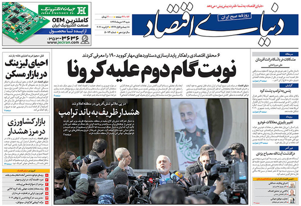 صفحه نخست روزنامه‌های کشور - شنبه ۱۳ دی ۱۳۹۹