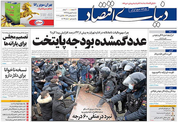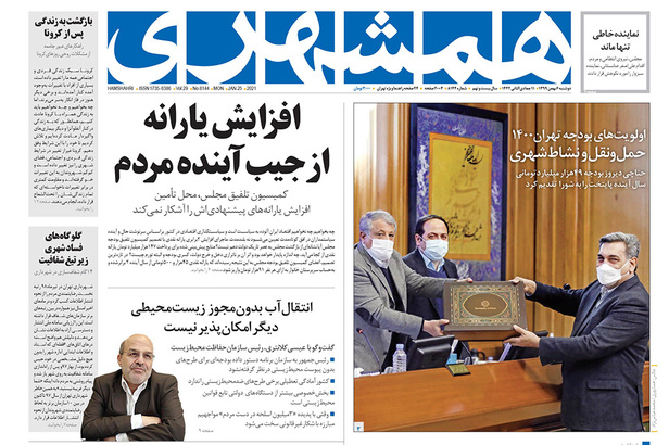 صفحه نخست روزنامه‌های کشور - دوشنبه ۶ بهمن ۱۳۹۹