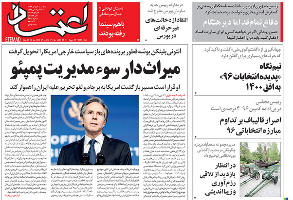 صفحه نخست روزنامه‌های کشور - پنجشنبه ۹ بهمن ۱۳۹۹