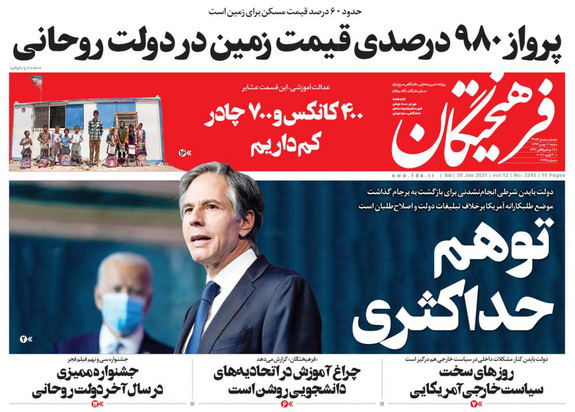 صفحه نخست روزنامه‌های کشور - شنبه ۱۱ بهمن ۱۳۹۹