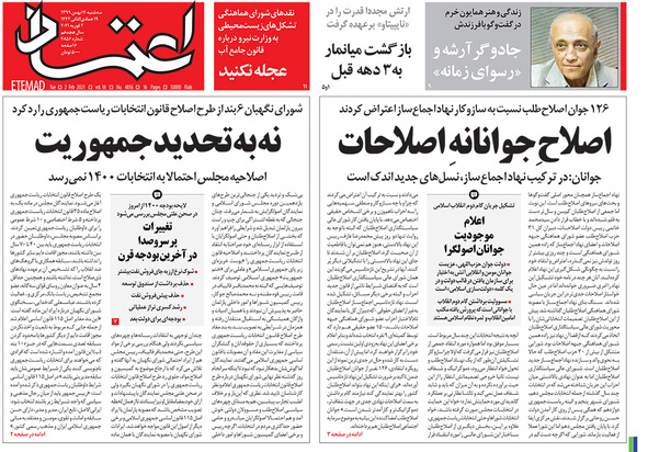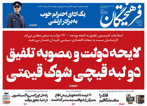 صفحه نخست روزنامه‌های کشور - سه‌شنبه ۱۴ بهمن ۱۳۹۹