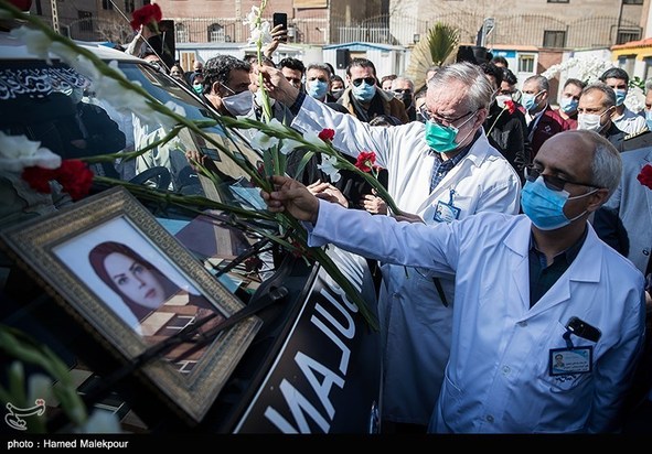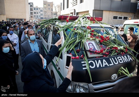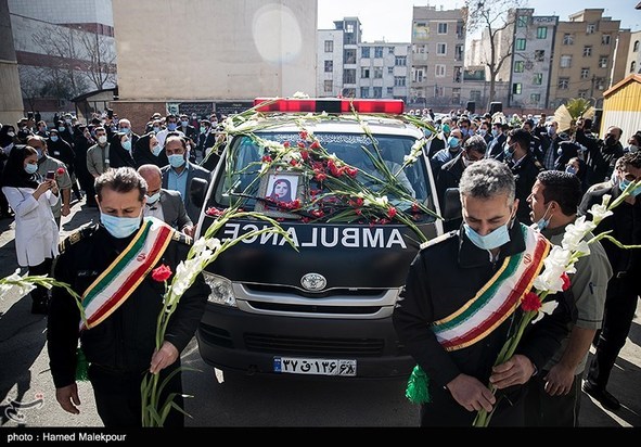 مراسم تشییع پیکر شهیده مدافع سلامت مهشید گودرز، پرستار باردار بخش کرونای مرکز پزشکی، آموزشی و درمانی لقمان که بر اثر کرونا به شهادت رسیده بود صبح دیروز یکشنبه ۲۶ بهمن در بیمارستان لقمان حکیم تهران برگزار شد.