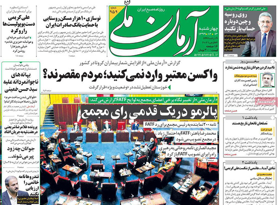 صفحه نخست روزنامه‌های کشور - چهارشنبه ۱۳ اسفند ۱۳۹۹