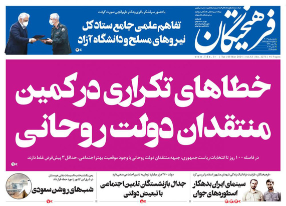 صفحه نخست روزنامه‌های کشور - سه‌شنبه ۱۹ اسفند ۱۳۹۹
