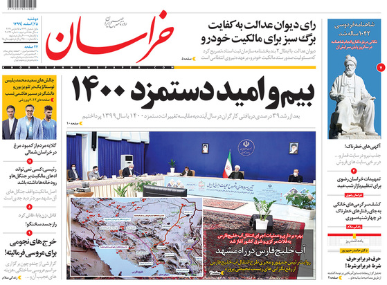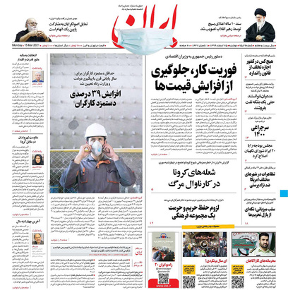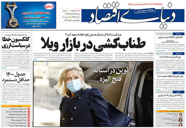 صفحه نخست روزنامه‌های کشور - دوشنبه ۲۵ اسفند ۱۳۹۹