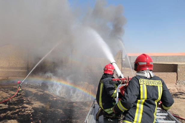 آتش نشانان برای مهار آتش سوزی انبار کارخانه رنگ در انتهای خیابان پنجتن (التیمور) وارد عملیات ویژه شدند.