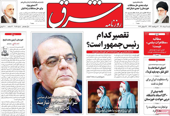 صفحه نخست روزنامه‌های کشور - شنبه ۲ مرداد ۱۴۰۰