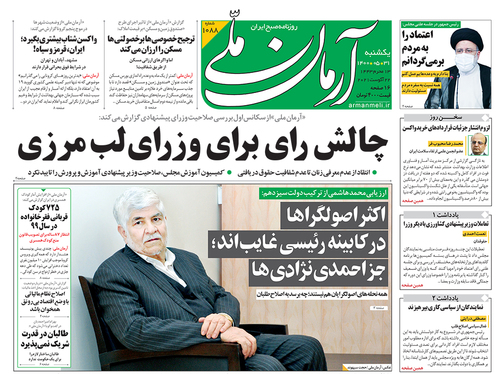 صفحه نخست روزنامه‌های کشور - یکشنبه ۳۱ مرداد ۱۴۰۰