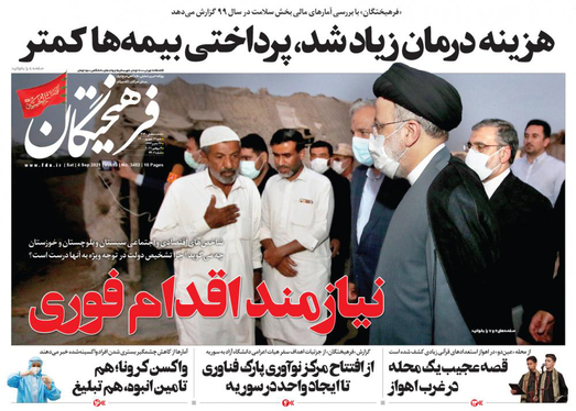 صفحه نخست روزنامه‌های کشور - شنبه ۱۳ شهریور ۱۴۰۰