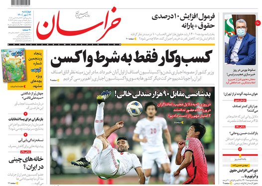صفحه نخست روزنامه‌های کشور - چهارشنبه ۲۱ مهر ۱۴۰۰